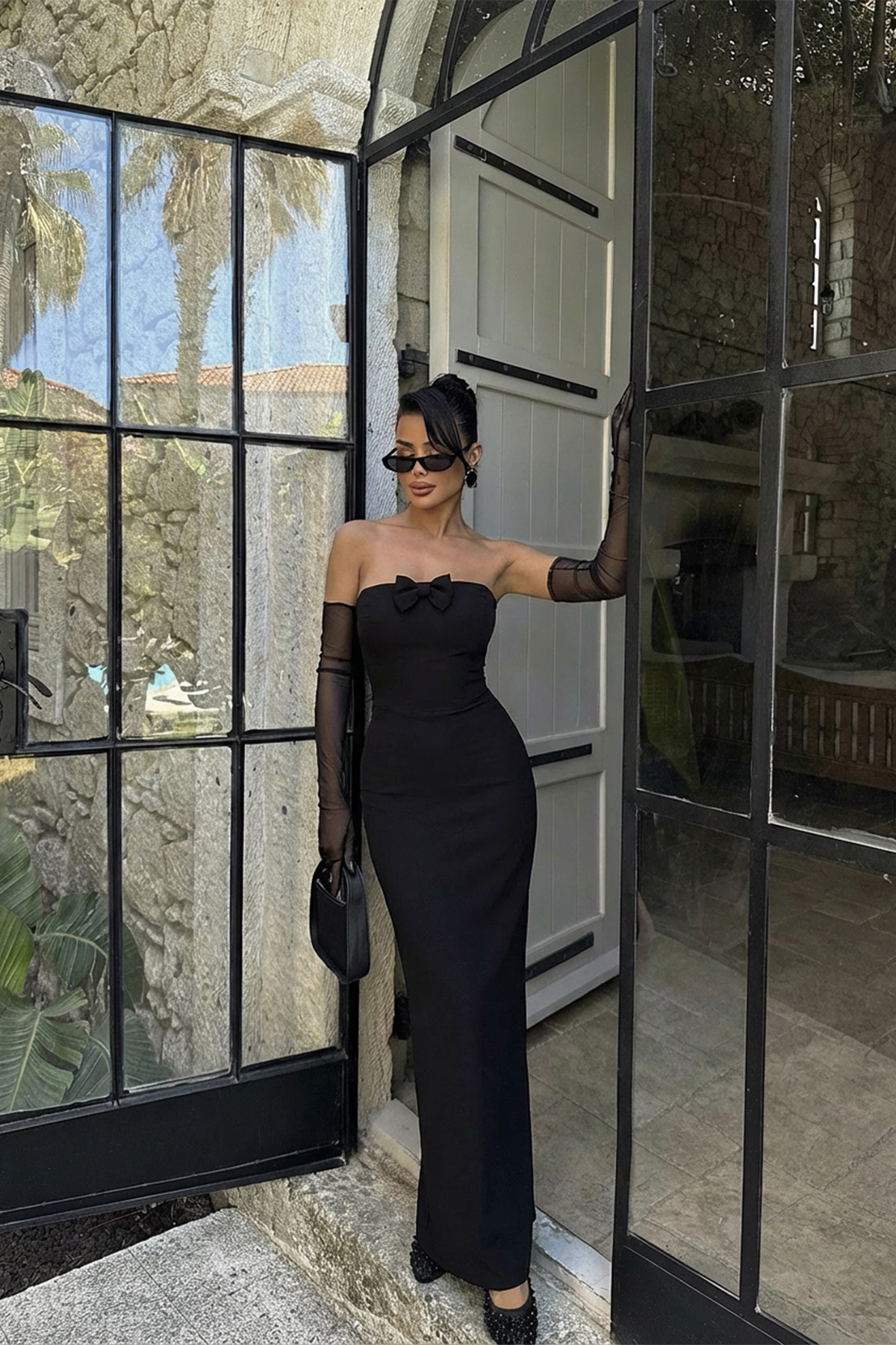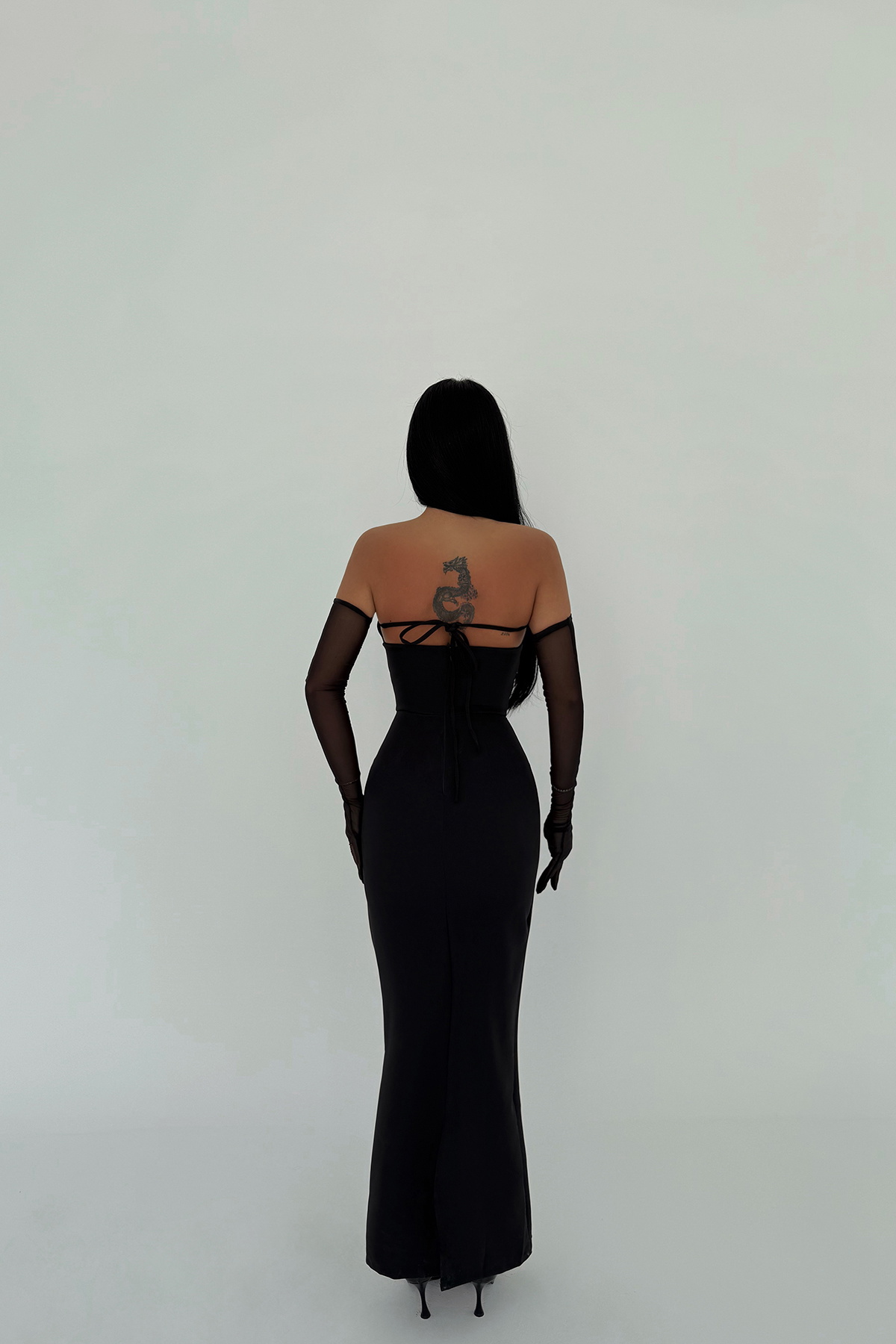 Siyah Enola Eldivenli Elbise – Zarif ve Özel Tasarım