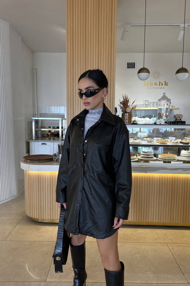 Siyah Gömlek Yaka Deri Mont ATE2796