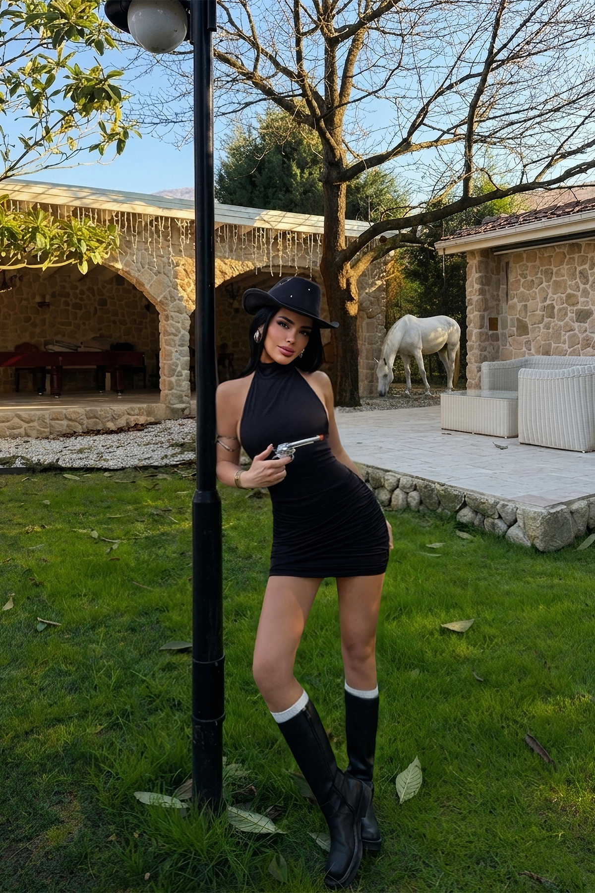 Minimal tasarımı ve vücuda oturan formuyla öne çıkan Siyah Kawos Elbise, güçlü ve feminen bir stil sunar. Halter yaka kesimi omuz hattını zarif şekilde vurgularken, bel kısmındaki drape detayı elbiseye hareket ve form kazandırır. Mini boy tasarımı modern ve iddialı bir görünüm oluşturur.