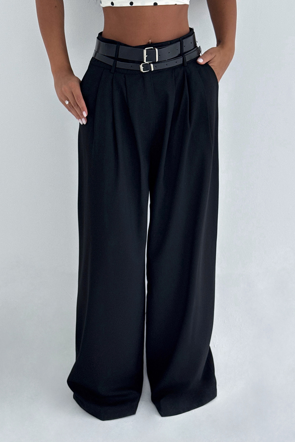 Siyah Lumia Çift Kemerli Pantolon – Modern ve Zarif Tasarım