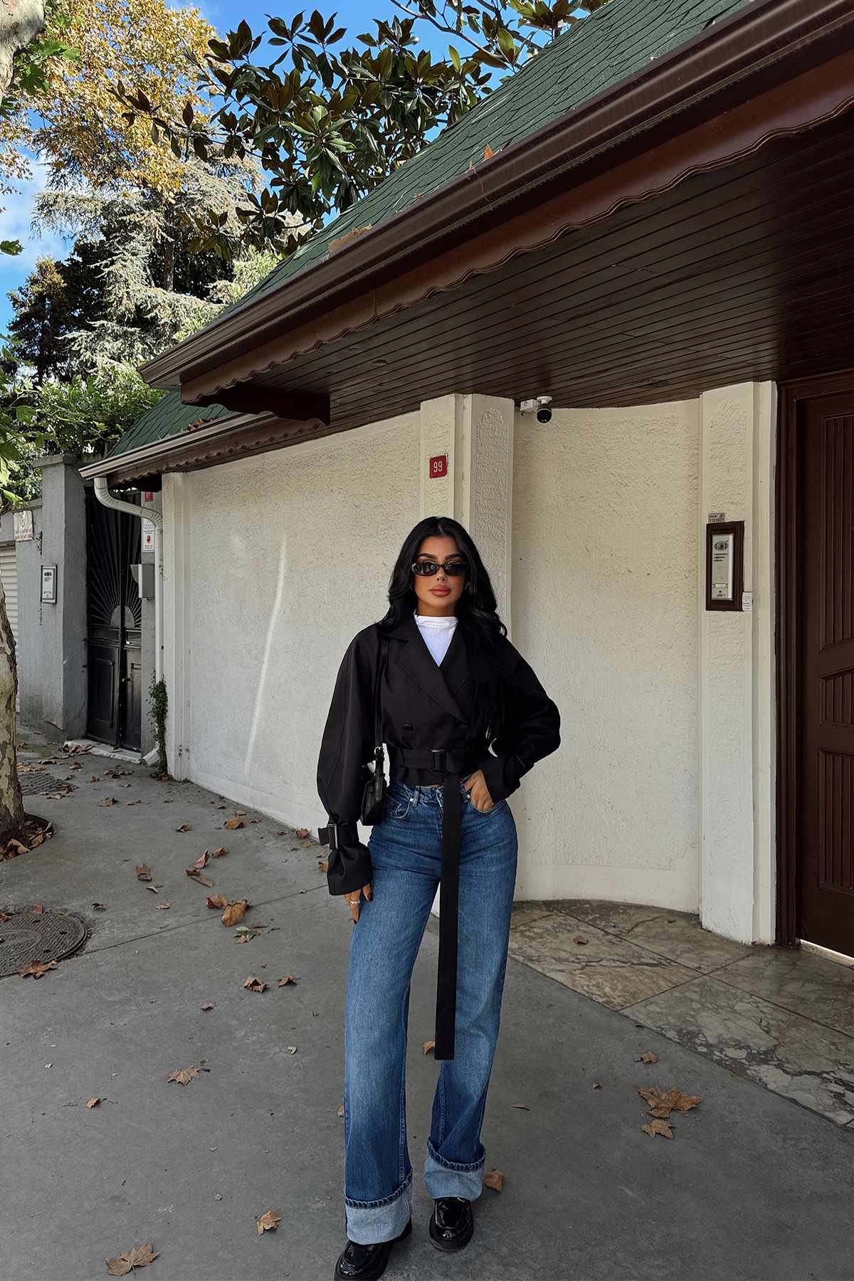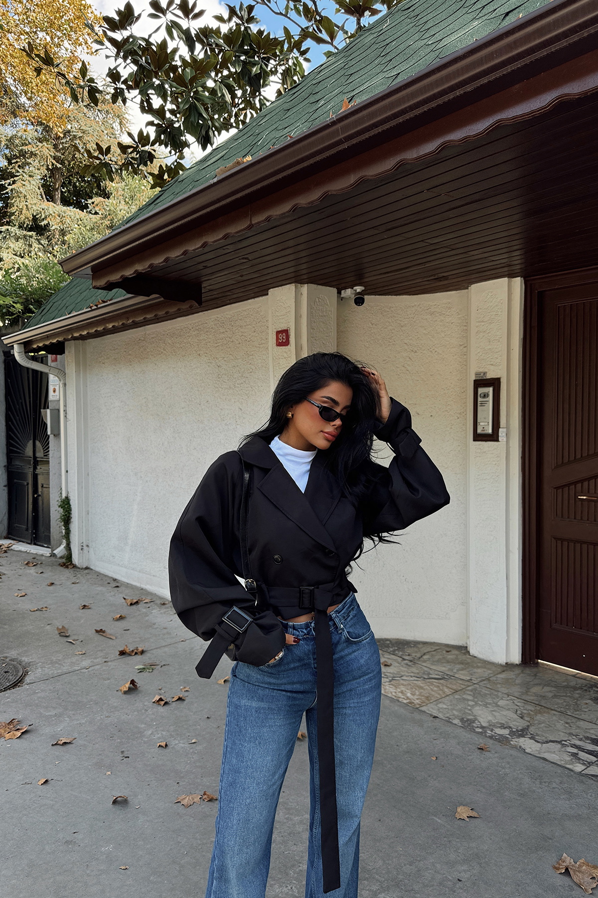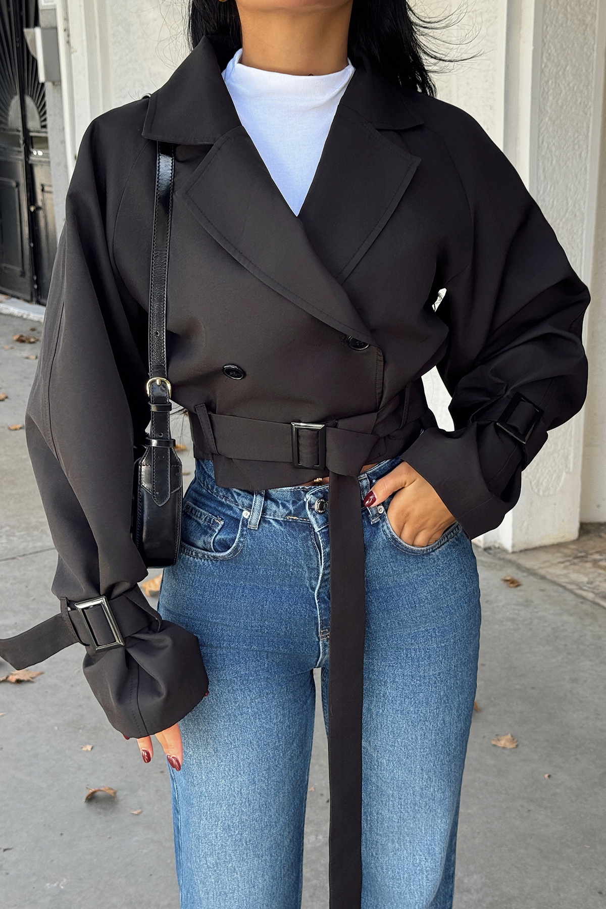 Siyah Kruvaze Yaka Ceket
