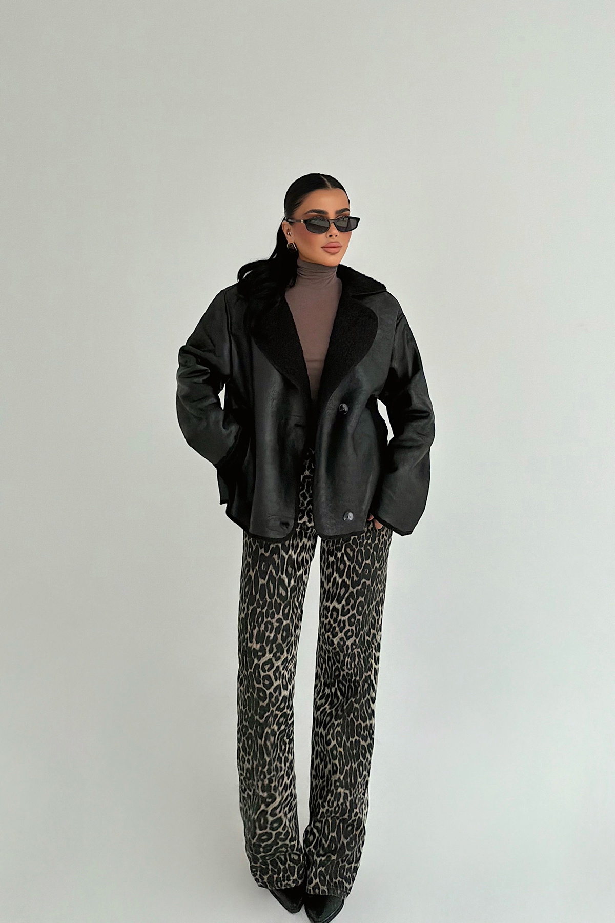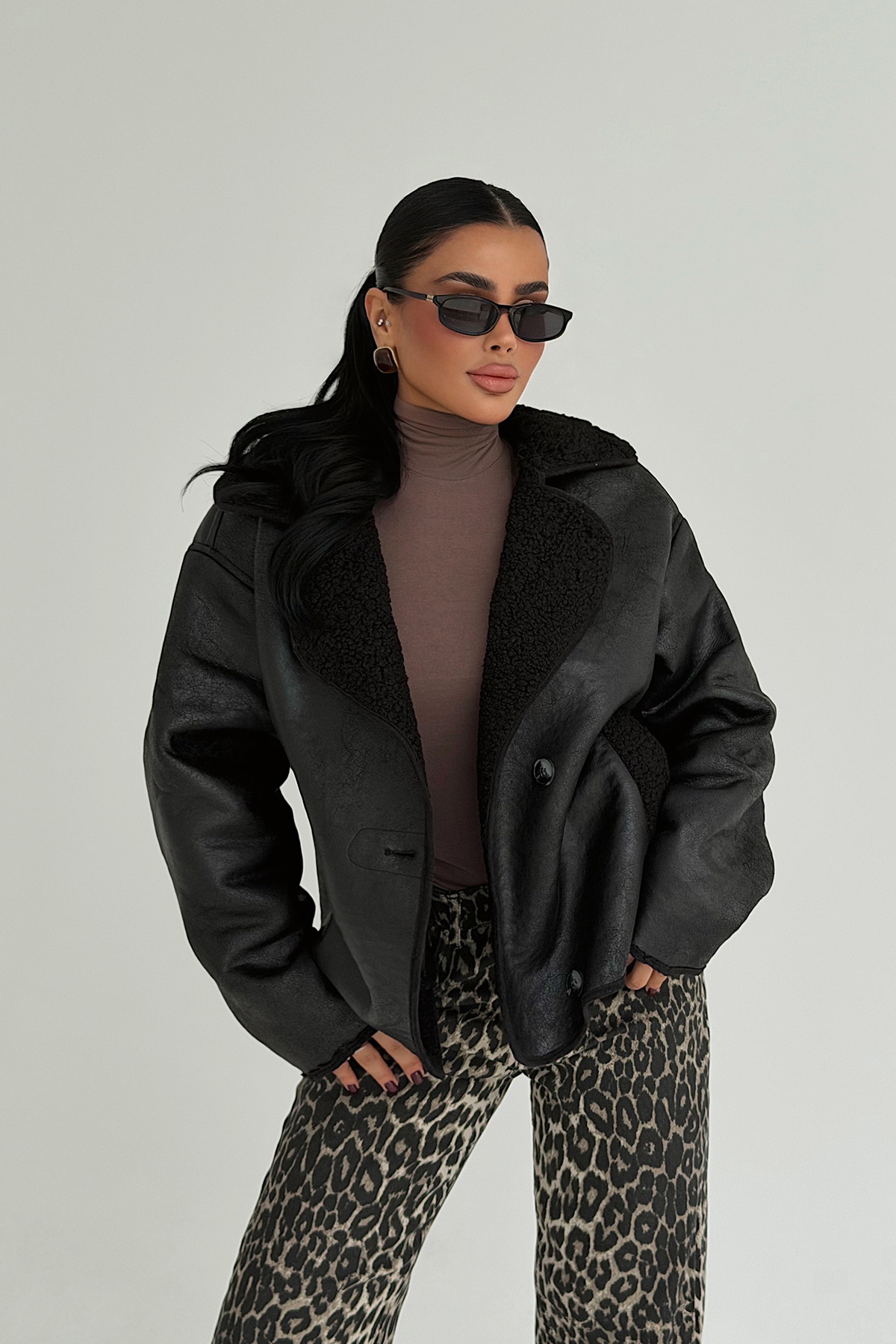 Şık siyah tonuyla dikkat çeken bu ceket; yaka ve kol uçlarındaki kürk detayları sayesinde klasik bir tasarımın üzerine lüks bir dokunuş ekliyor. Bel kısmındaki hafif oturan kesimi ve yüksek bel vurgusuyla silueti zarif şekilde tamamlıyor. İster günlük kombinlerinizde jean ve sneaker ile ister gece davetlerinde topuklu ve mini etekle kullanın — konforlu astarlı iç yüzeyi soğuk havalarda ekstra sıcaklık sunar.