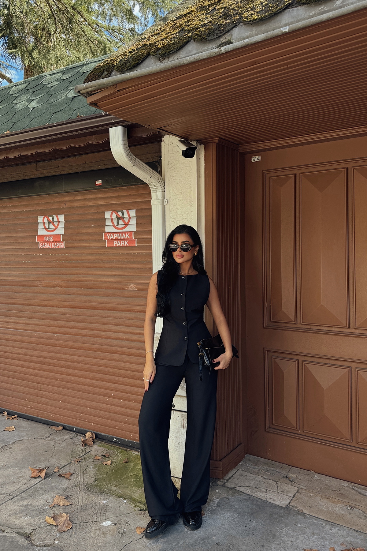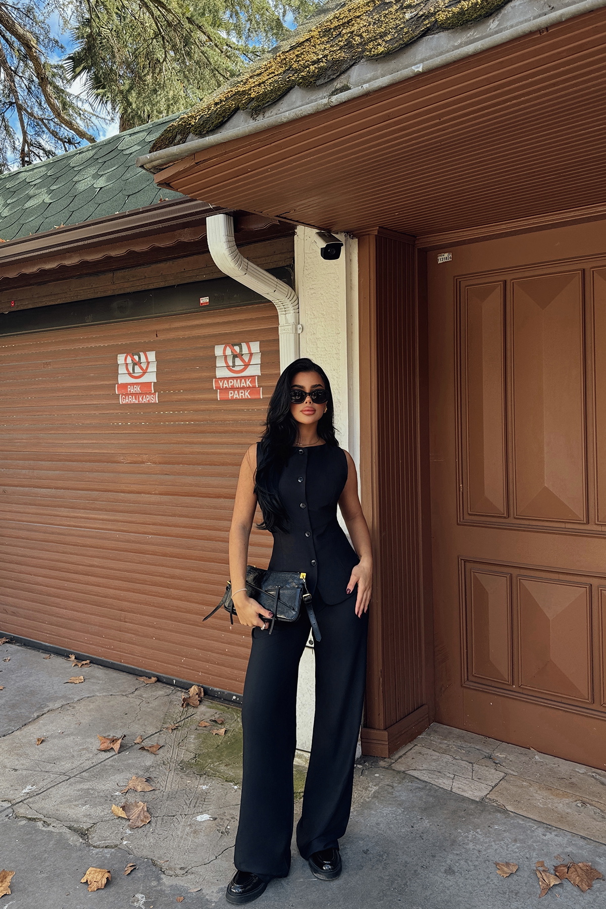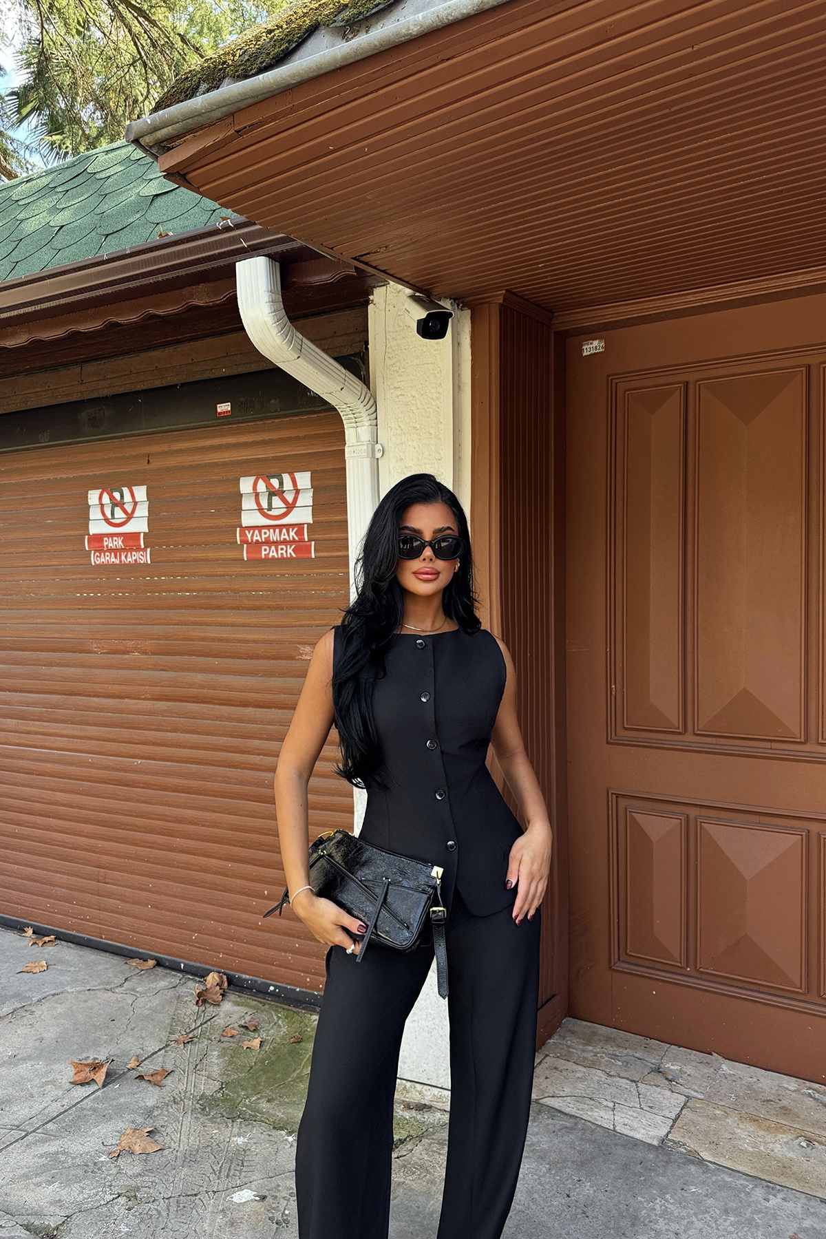 Siyah Lamarie Bel Kısmı Bağlamalı Alt Üst Takım