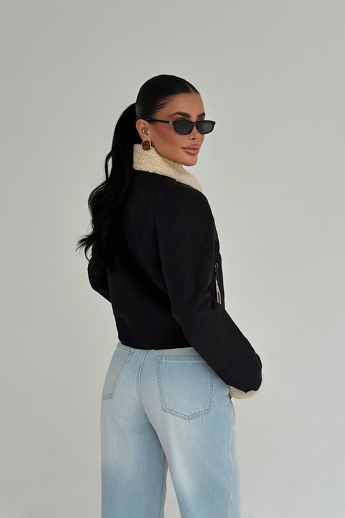Siyah renkli bu peluş ceket, iç yüzeyindeki ve yakasındaki yumuşak peluş dokusuyla sıra dışı bir rahatlık sunar. Hafif kapüşonlu veya yakalı tasarımı ile gün boyu konfor sağlar; düz kesimi sayesinde jean ya da kumaş pantolonlarla kolayca kombinlenebilir. Minimal detaylarla sade bir görünüm sunduğu için, hem şehir içi gündelik stilinizde hem de hafta sonu dışarı çıkarken rahatça tercih edilebilir.