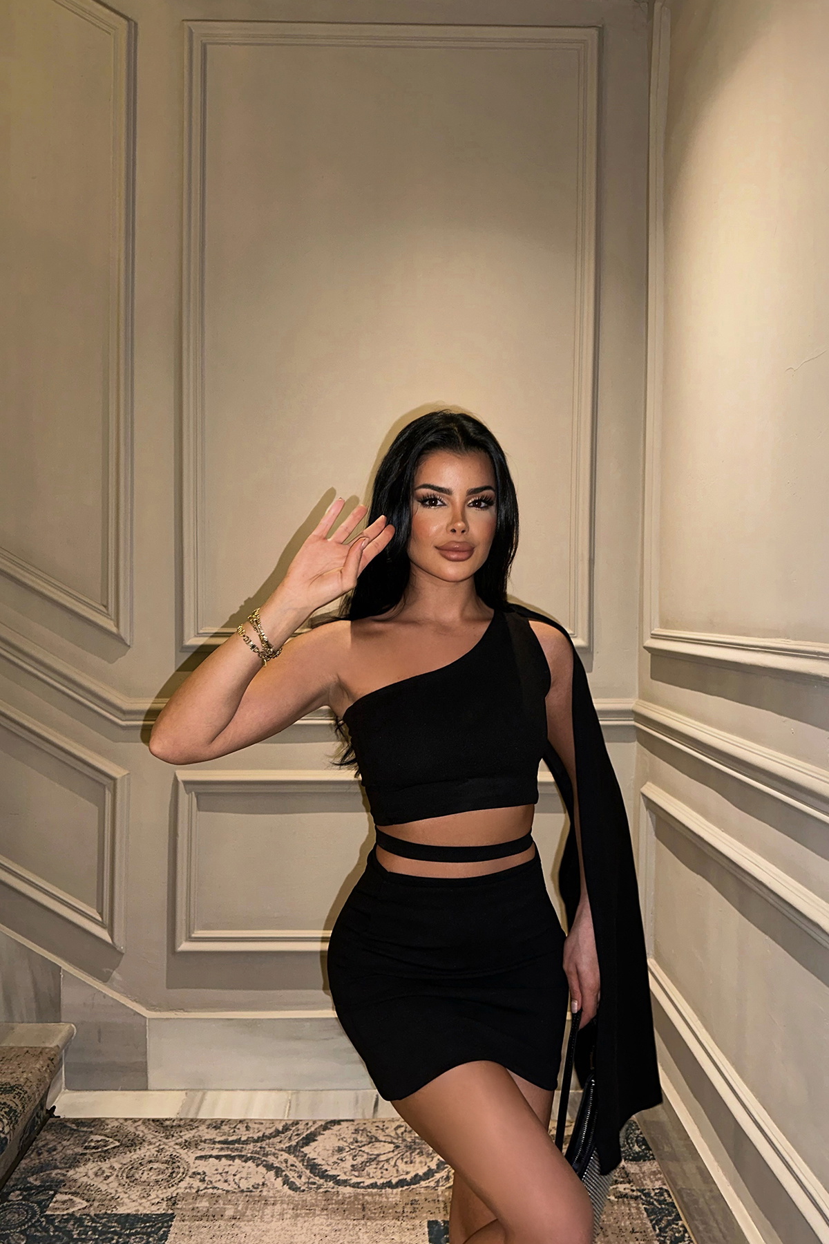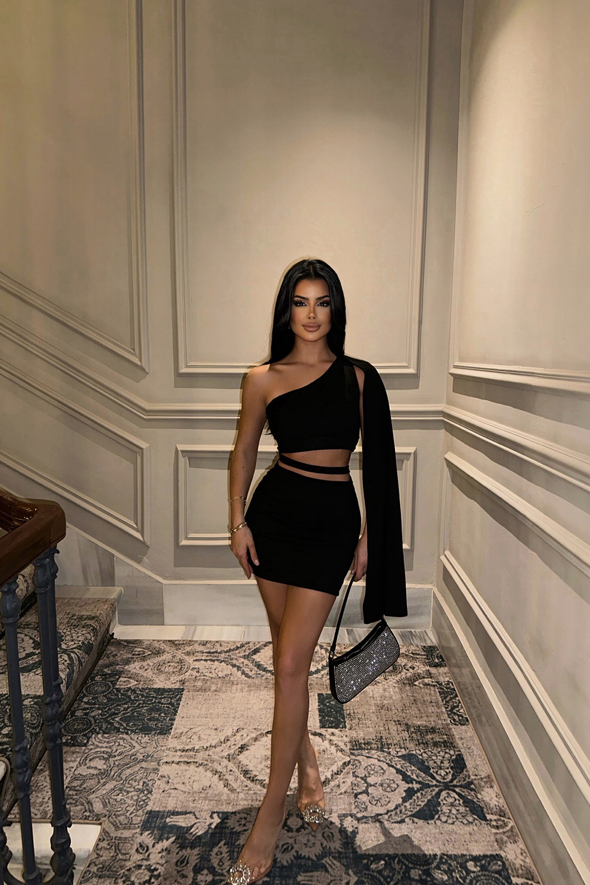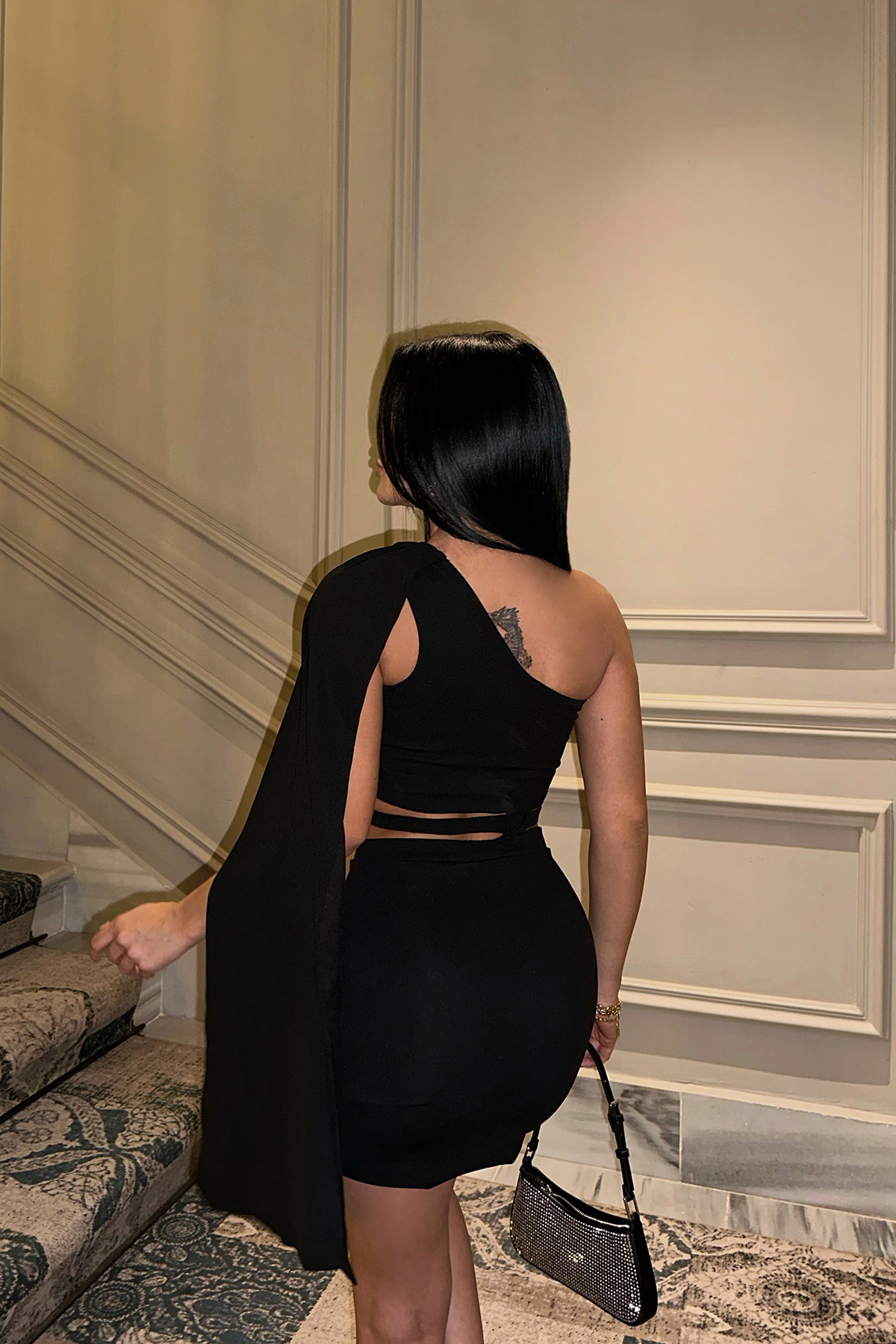 Siyah Pencere Detay Mini Elbise