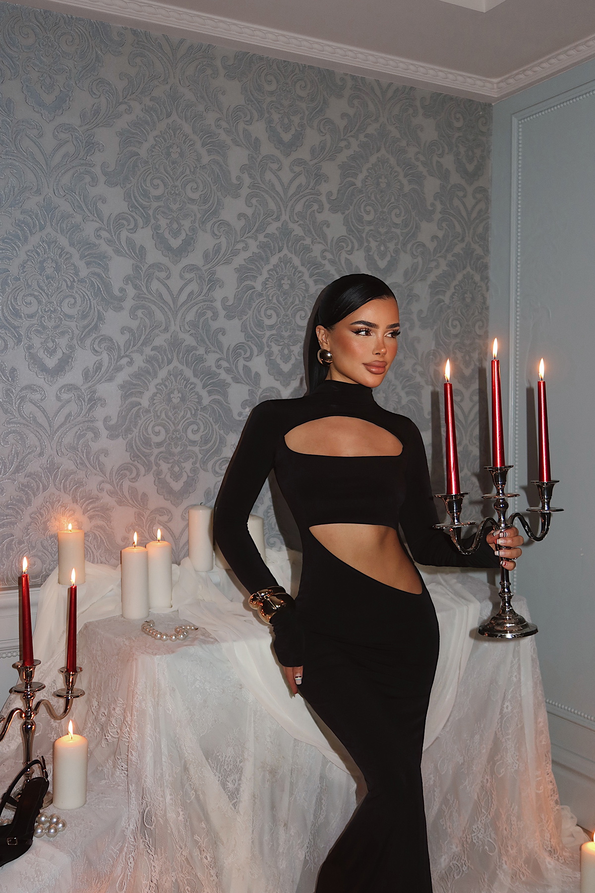 Siyah pencere Detay Uzun Elbise ATE-0945