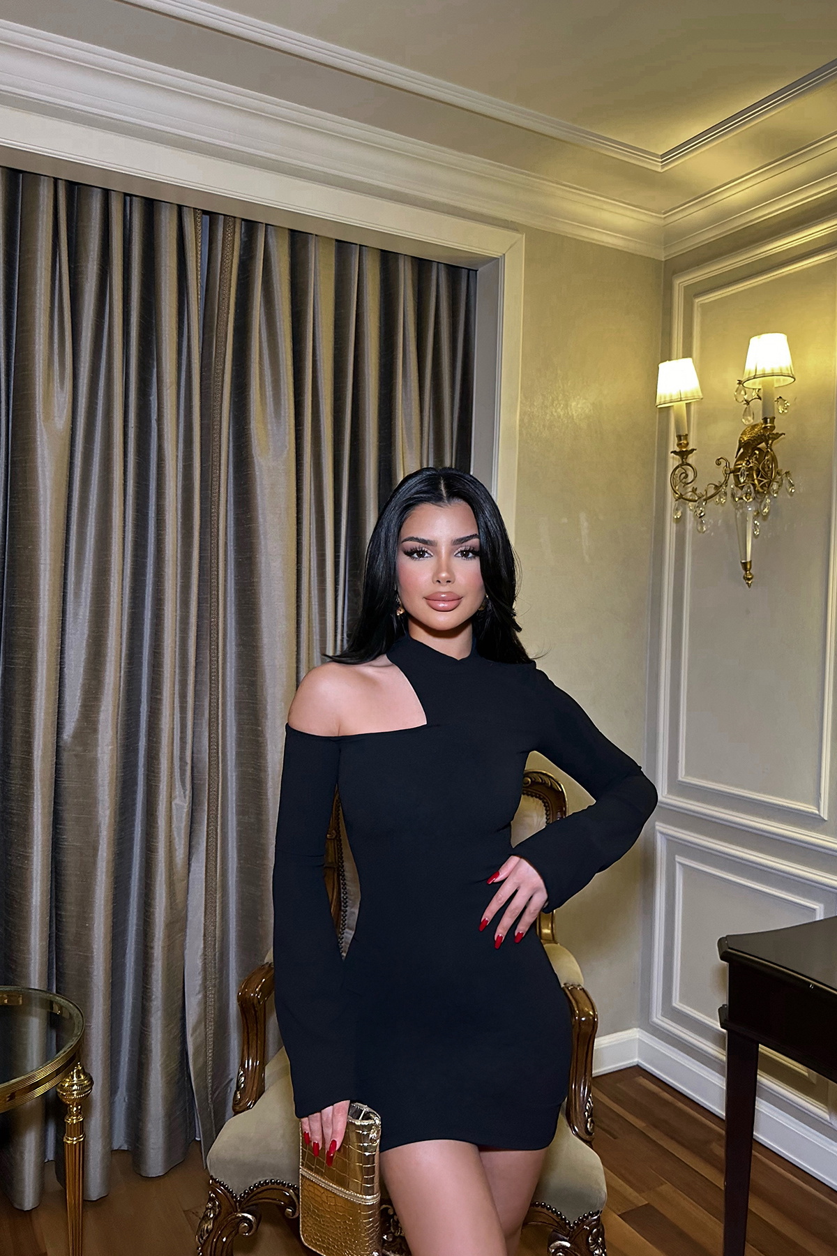 Siyah Pencere Detay Uzun Kol Elbise