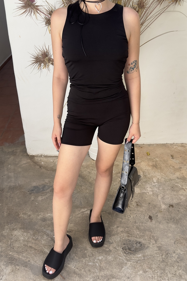 Siyah Sırt Detay Basic Tulum