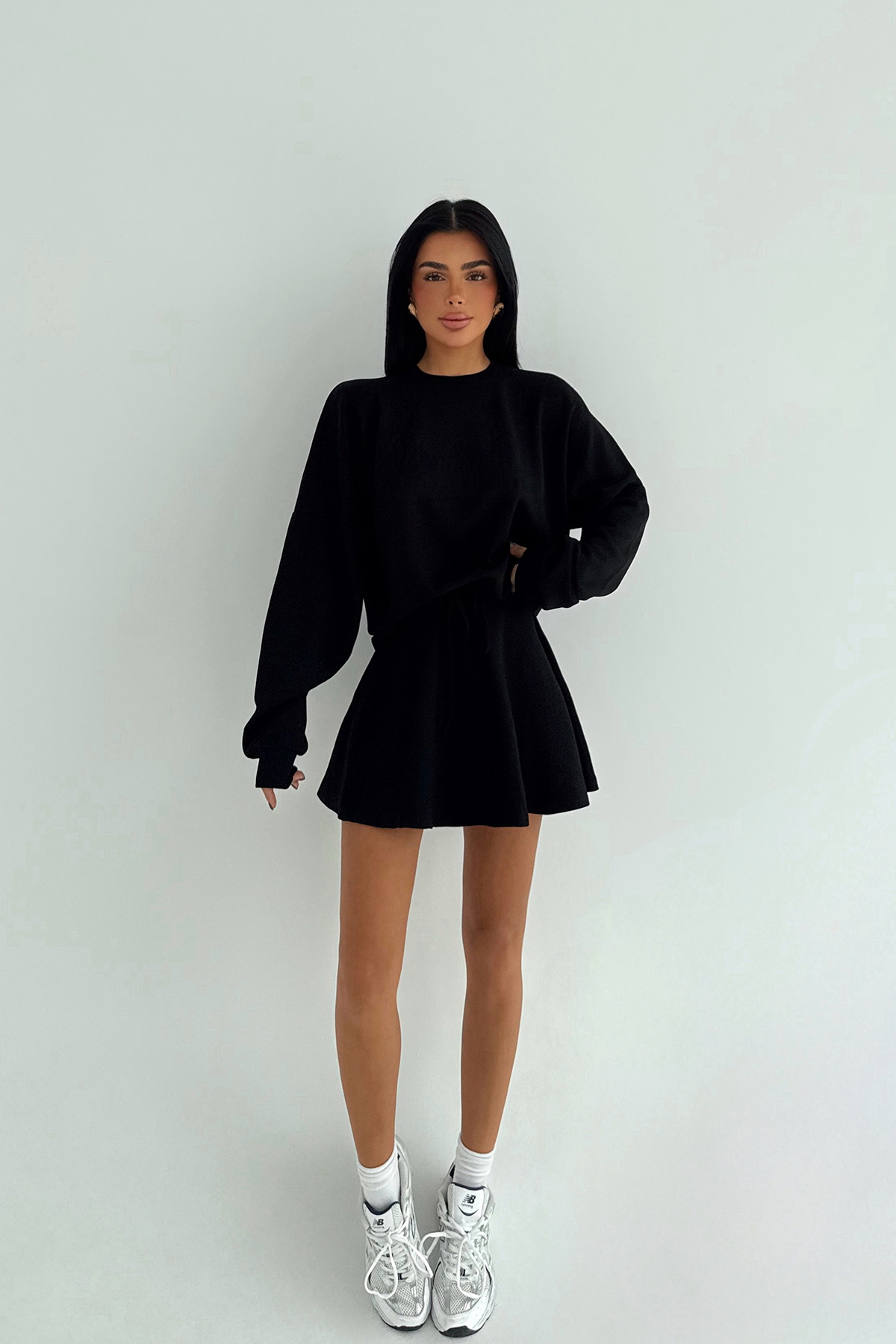 Siyah Torque Şort Etekli Eşofman Takım – Rahat ve Modern Şıklık