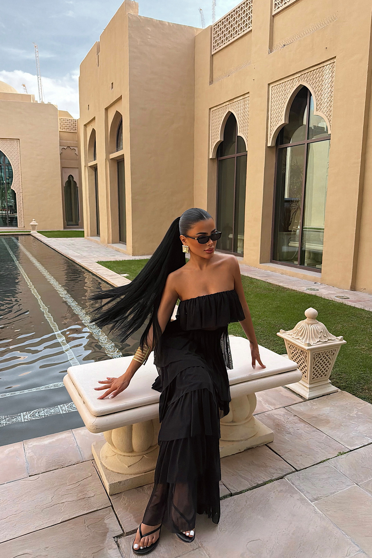 Zarif tül dokusu ve kat kat tasarımıyla dikkat çeken bu straplez uzun elbise, romantik ve modern bir silueti bir arada sunar. Göğüs kısmındaki akışkan tül form, elbiseye hafif ve feminen bir duruş kazandırırken; etek bölümündeki kat kat yapı hacimli ve dengeli bir görünüm oluşturur.
