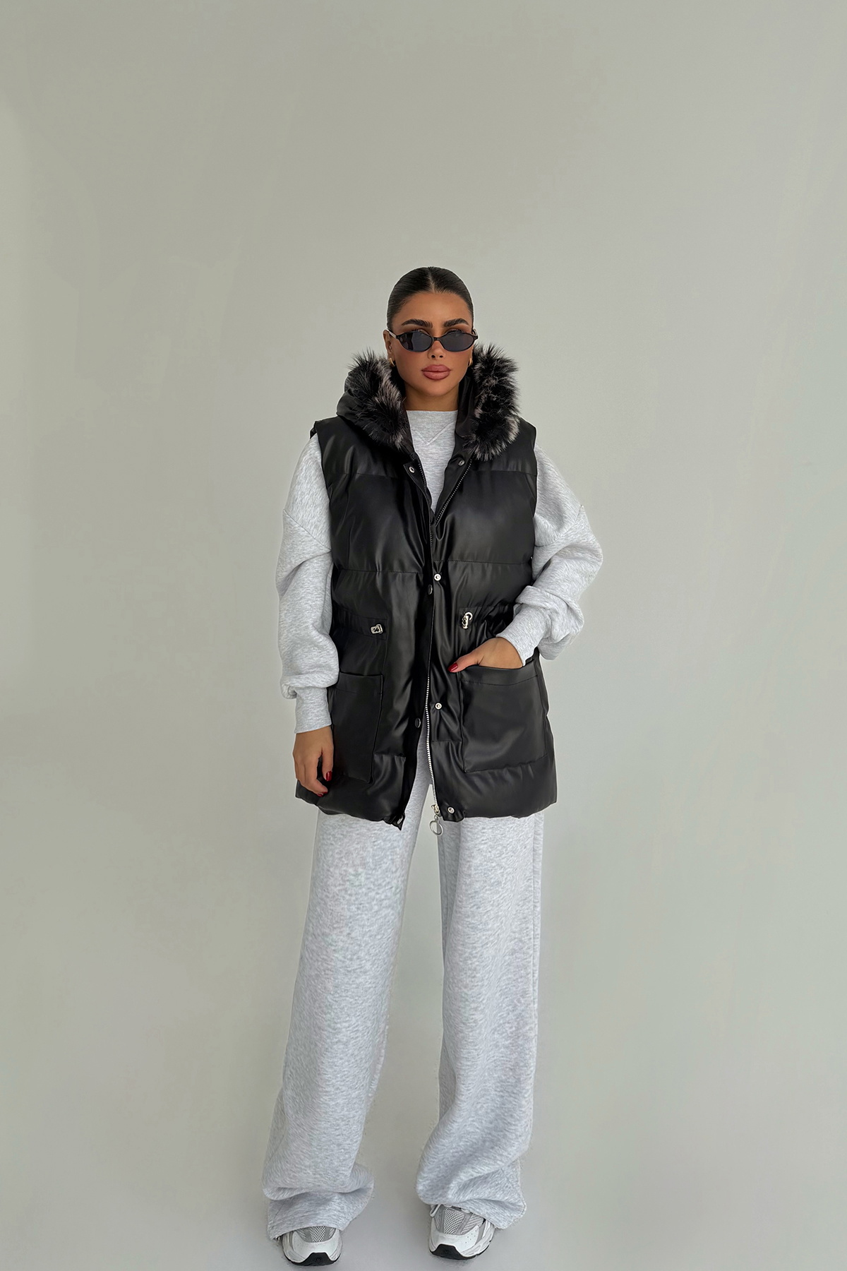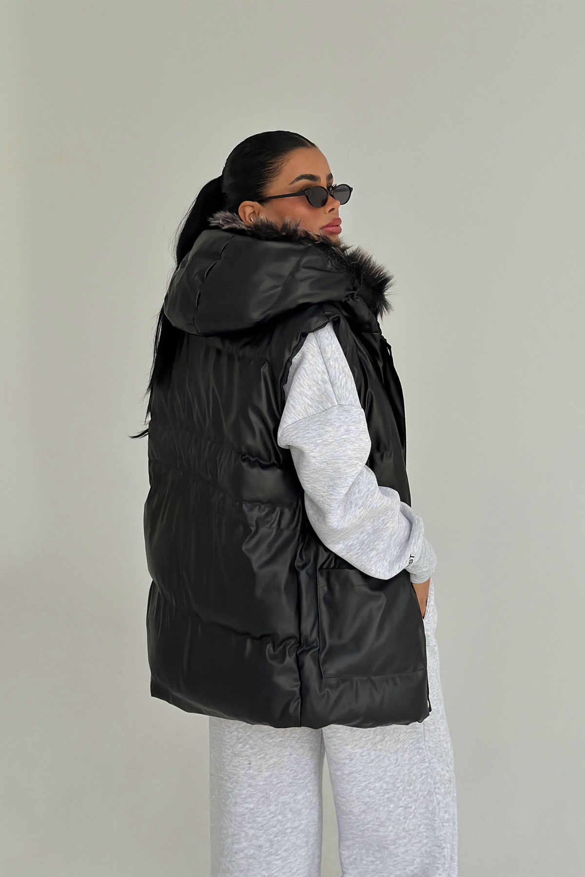 Siyah Cloveyx Tüylü Şişme Yelek