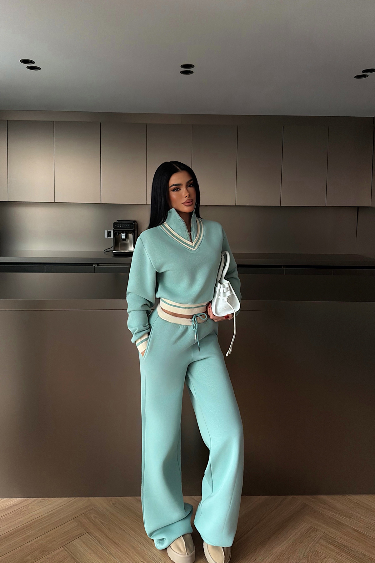 Rahat şıklığı modern detaylarla buluşturan bu eşofman takımı, yumuşak dokusu ve dökümlü duruşuyla gün boyu konfor sunar. Yaka kısmındaki sportif çizgiler, takıma zarif bir dinamizm katar. Geniş paça formu, özgür hareket imkânı sağlarken modern bir siluet oluşturur. Hem günlük stilinizi yükseltmek hem de konforlu bir görünüm elde etmek için ideal bir seçimdir.