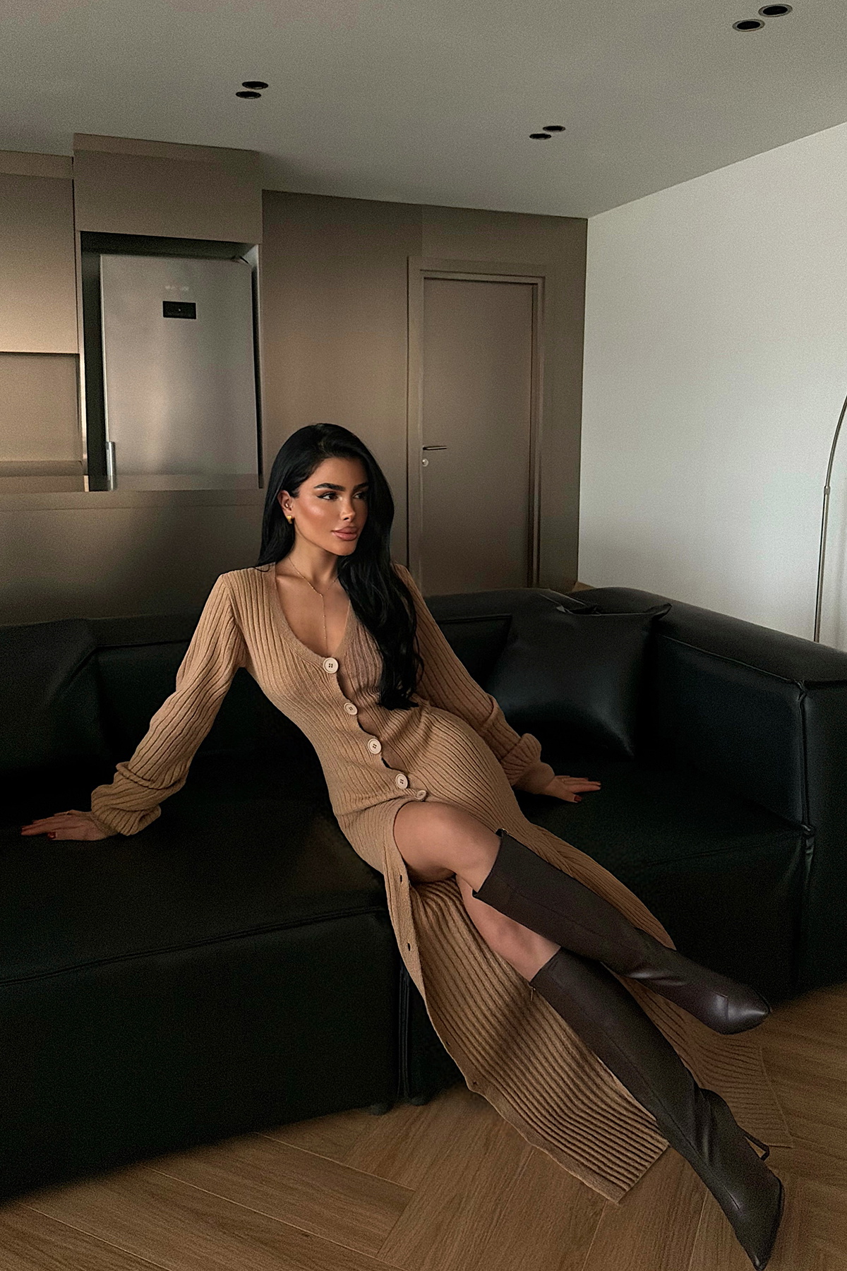 Ön kısmındaki düğme kapama ve yırtmaç detayı, tasarıma modern bir hareket kazandırırken konforlu yapısıyla gün boyu rahatlık sağlar. Uzun kollu tasarımı ve akıcı dokusu sayesinde hem günlük şıklıkta hem de özel kombinlerde tercih edilebilecek zamansız bir parçadır.