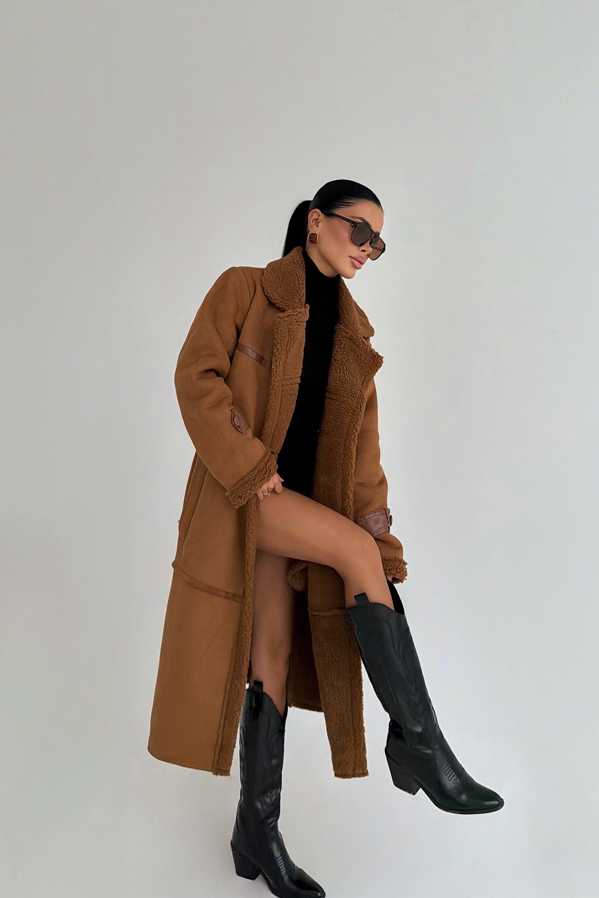 Bu ceket, sıcak taba rengiyle sade ama dikkat çekici bir şıklık sunuyor. Öne çıkan düğme detayları klasik duruşa modern bir dokunuş katarken, kesimiyle hem günlük kullanım hem de hafif şık kombinler için uygun. Yumuşak dokusu ve kaliteli görünümüyle gardırobunuzda soğuk günlere karşı güvenilir bir parça.