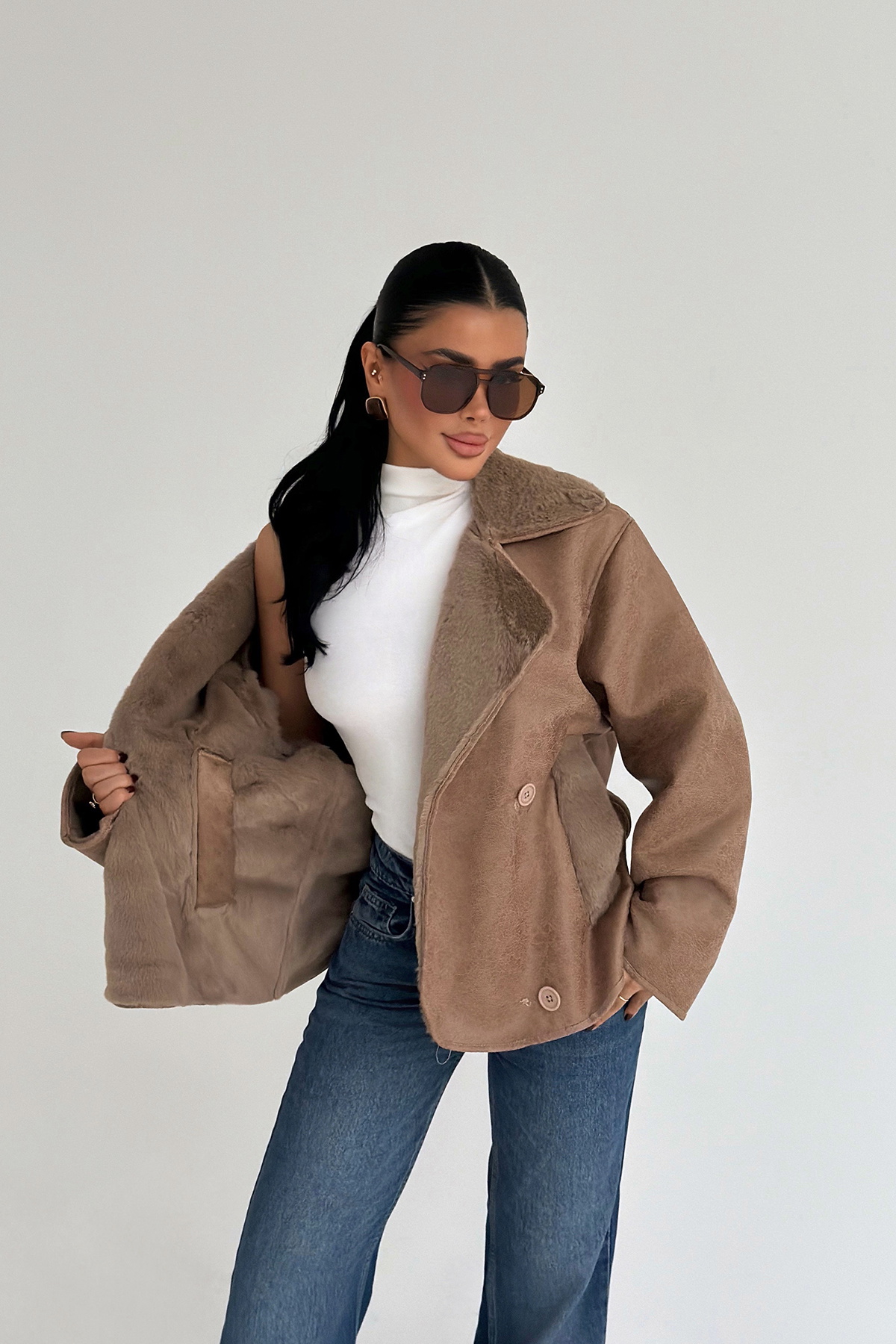 Sıcak taba tonuyla dikkat çeken bu düğmeli ceket, ön kısmındaki düğme detayları sayesinde klasik çizgiyi modern bir stille birleştiriyor. Bel hizasında ve düz kesimiyle farklı kombinlere uyum sağlıyor. Yumuşak dokusu ve sade tasarımıyla hem günlük kullanım için hem de hafif şık davetlerde tercih edilebilir.
