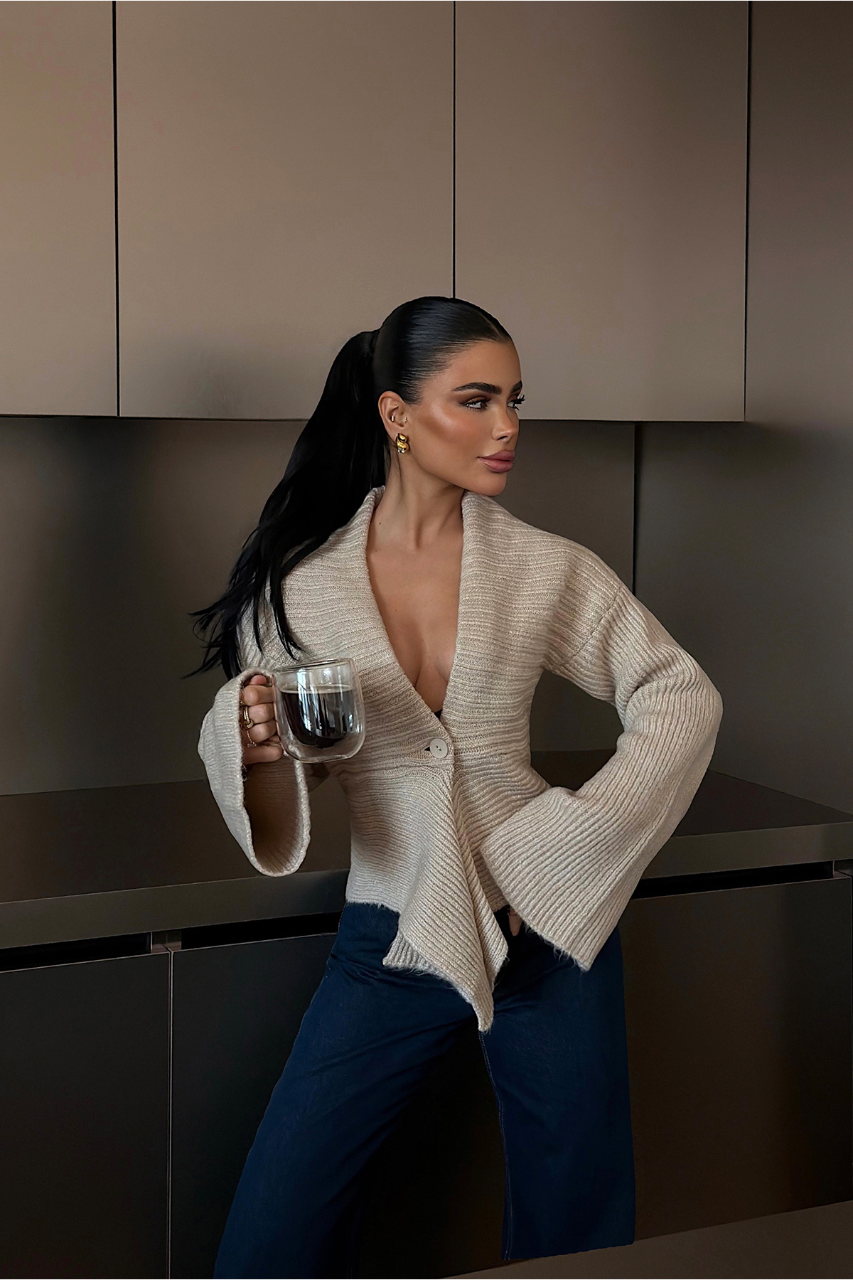 Yumuşak dokulu triko yapısı ve düğmeli tasarımıyla öne çıkan hırka, rahat kesimi sayesinde modern ve dengeli bir siluet sunar. Sade duruşu ve akıcı formu ile günlük kombinlerden şehir stiline kadar konforlu ve şık bir kullanım sağlar.