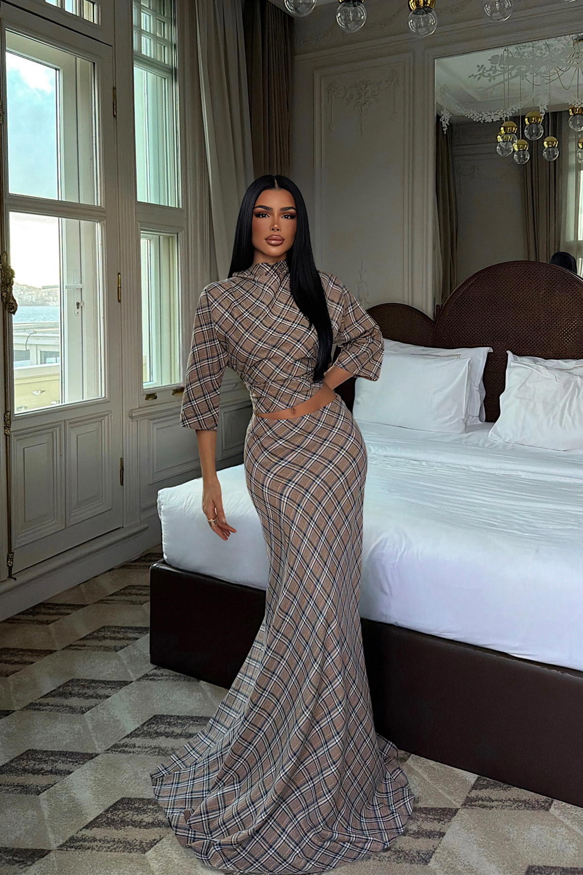 Şık desenli tasarımıyla dikkat çeken Toprak Rosemary takım, crop üst ve uzun etekten oluşan modern bir görünüm sunar. Vücuda uyum sağlayan kalıbı feminen bir duruş kazandırırken, desenli kumaşı kombinlere zarif bir hava katar. Günlük şıklık ve özel davet kombinleri için ideal bir takımdır.