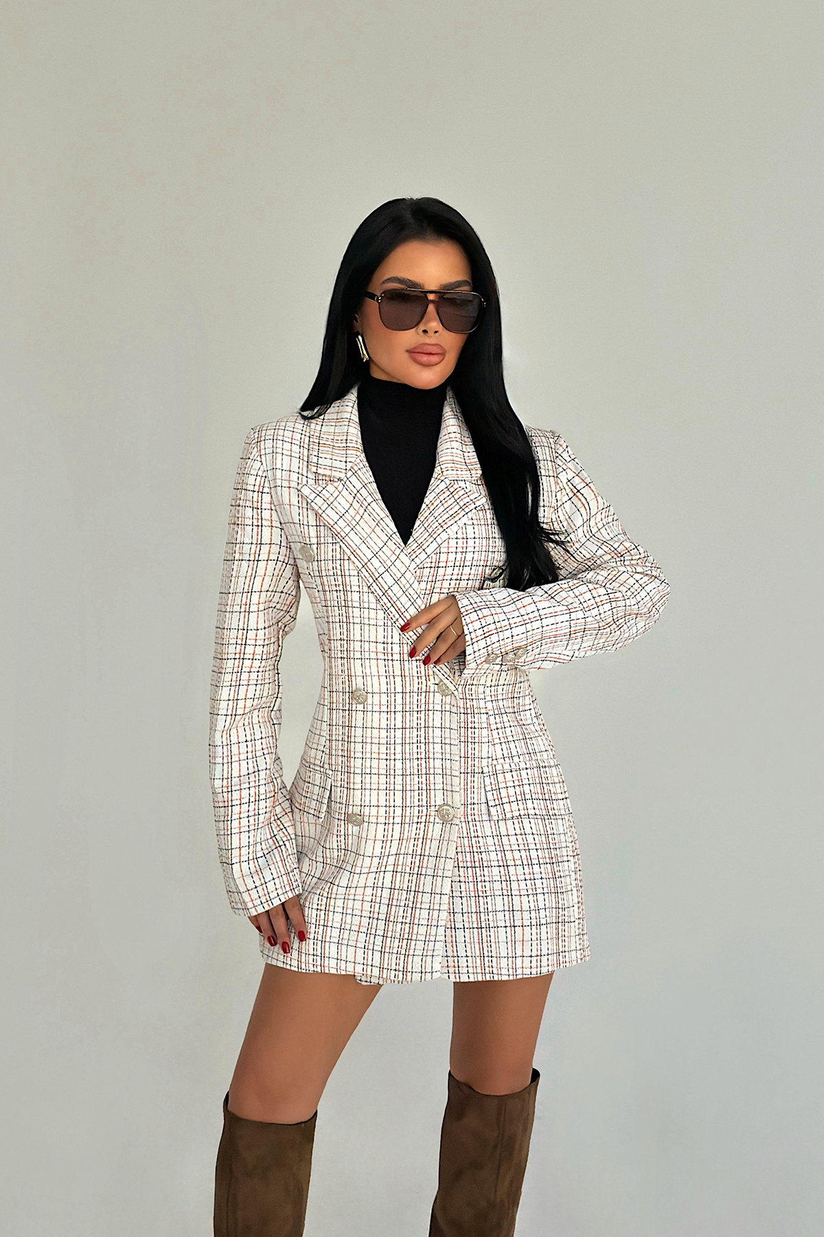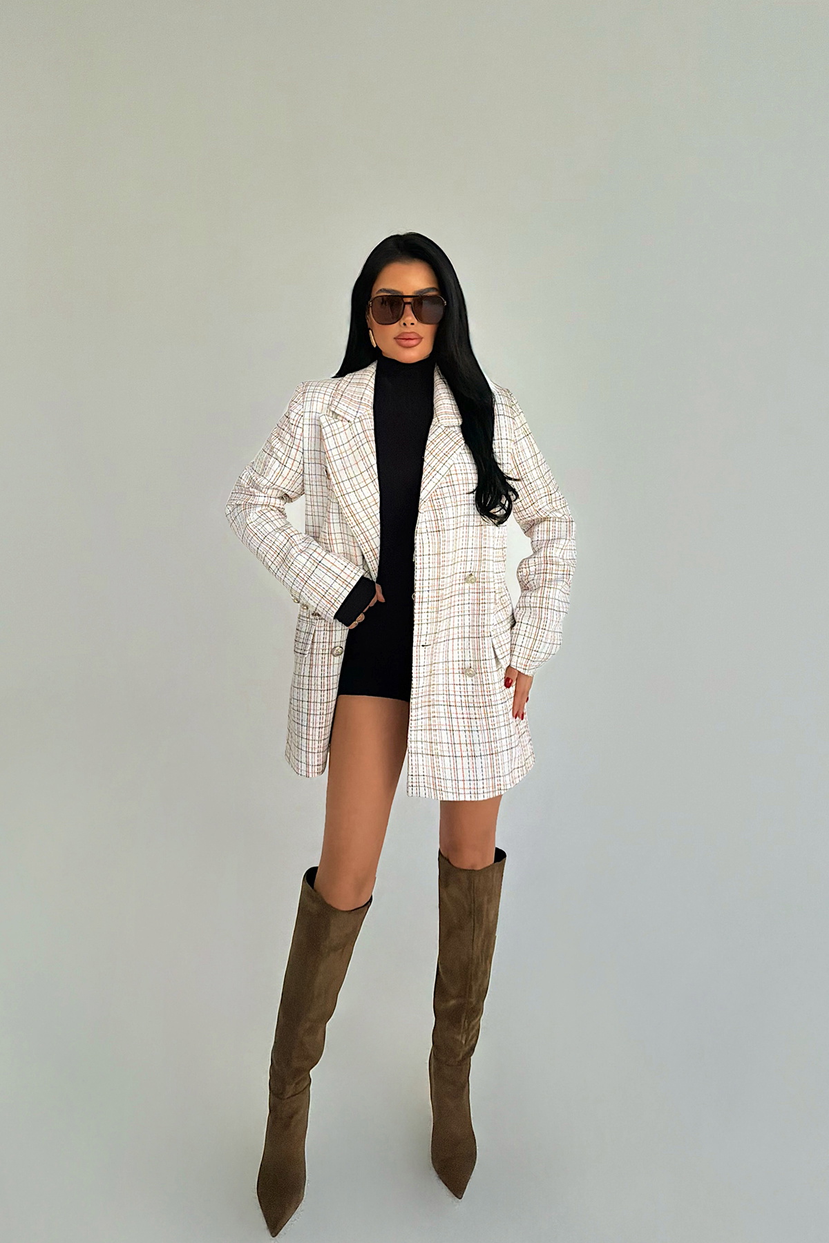 Ceket, düğme detayları sayesinde tasarıma fonksiyonel ve dikkat çekici bir hareket kazandırır. Yapısal formu ve temiz dikiş hatlarıyla öne çıkan model, düzenli kalıbı ile dengeli bir siluet sunar.