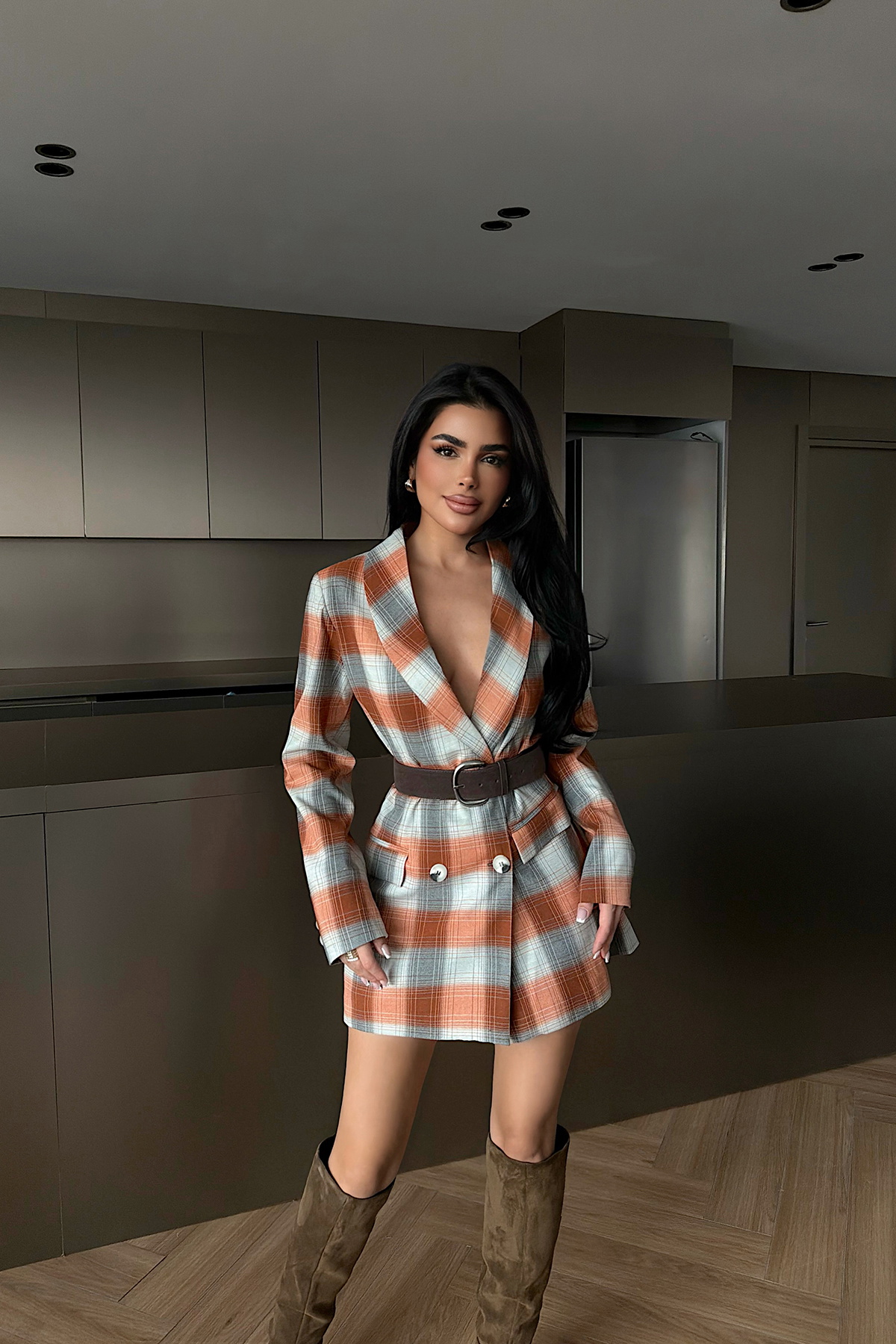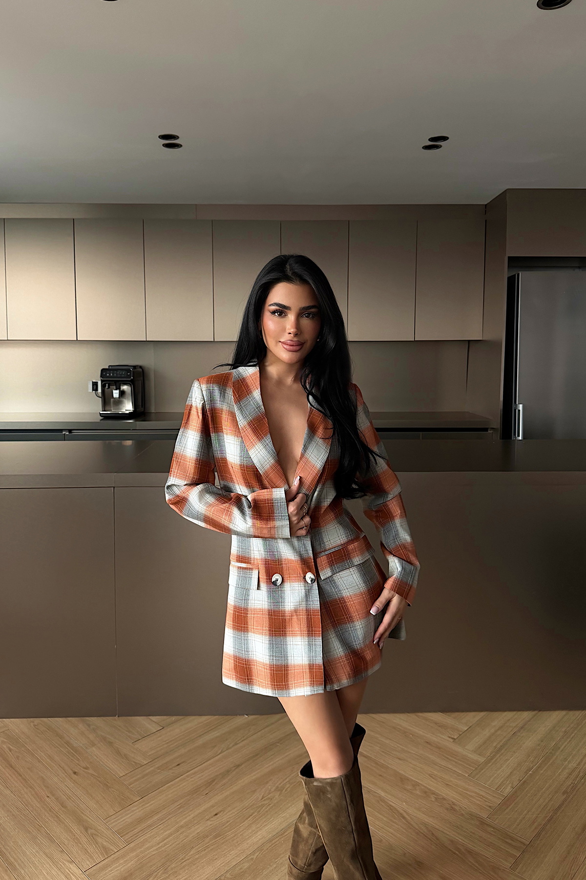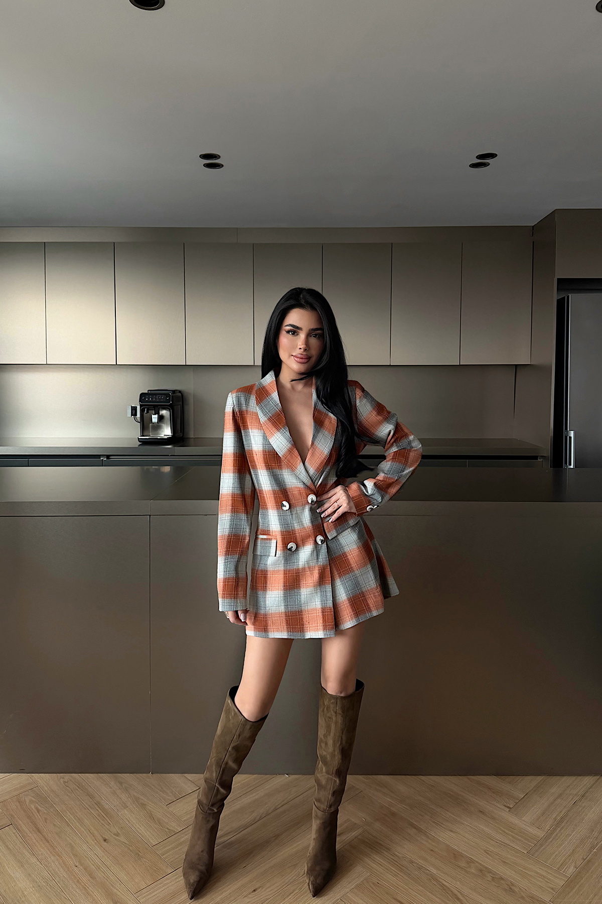 Turuncu Düğmeli Ekose Ceket ATE-3909