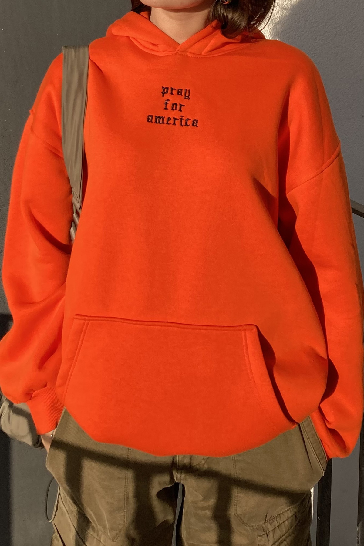 Turuncu Kanguru Cep Detay Kapşonlu Sweat