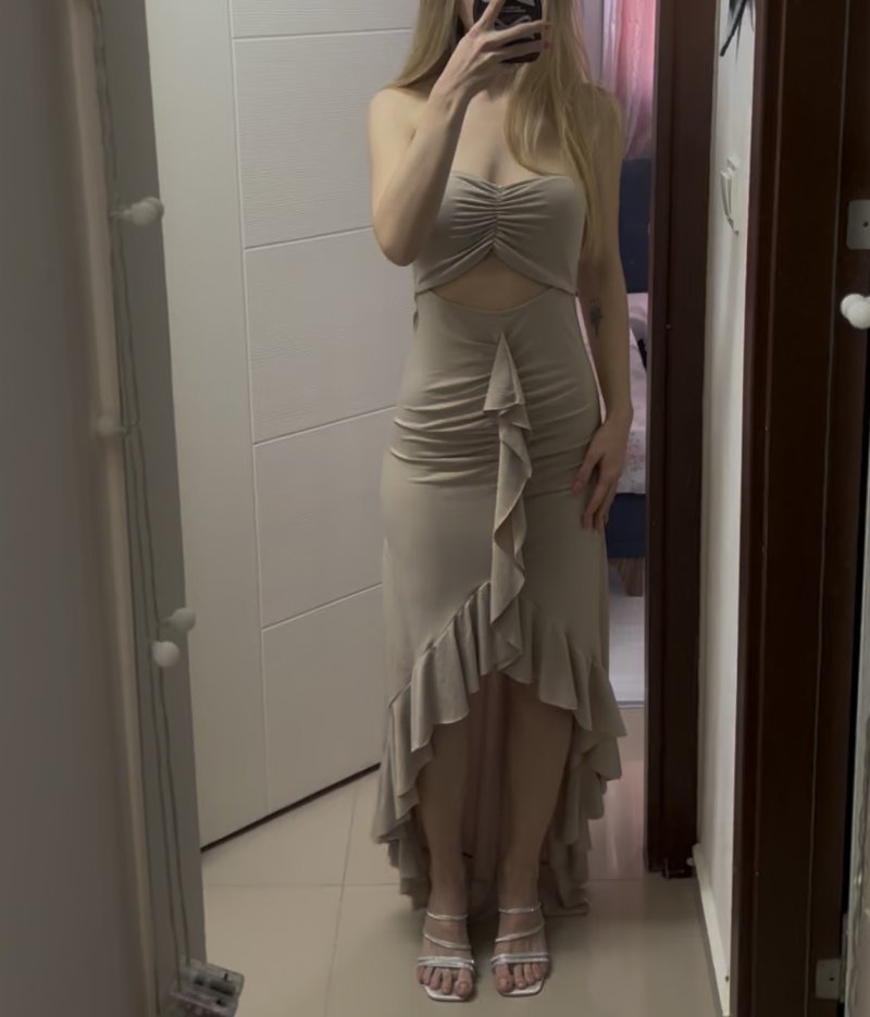 Elbiseye bayıldım XS aldım tam otursun diye tek başıma fermuarını çekmesi biraz zor oldu ama tam istediğim gibi oldu vücuduma emeği geçen herkese teşekkür ederim