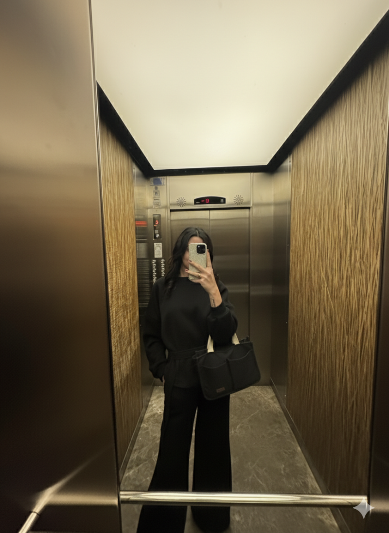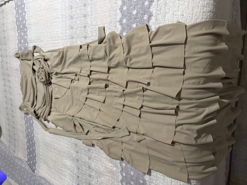 Kumaşı duruşu harika tam istediğim gibi oldu üst kısmı oturuyor sonrası geniş geliyor. Kumaş kalitesi de çok rahat kağıt gibi kalıp duran sert bi kumaş asla değil