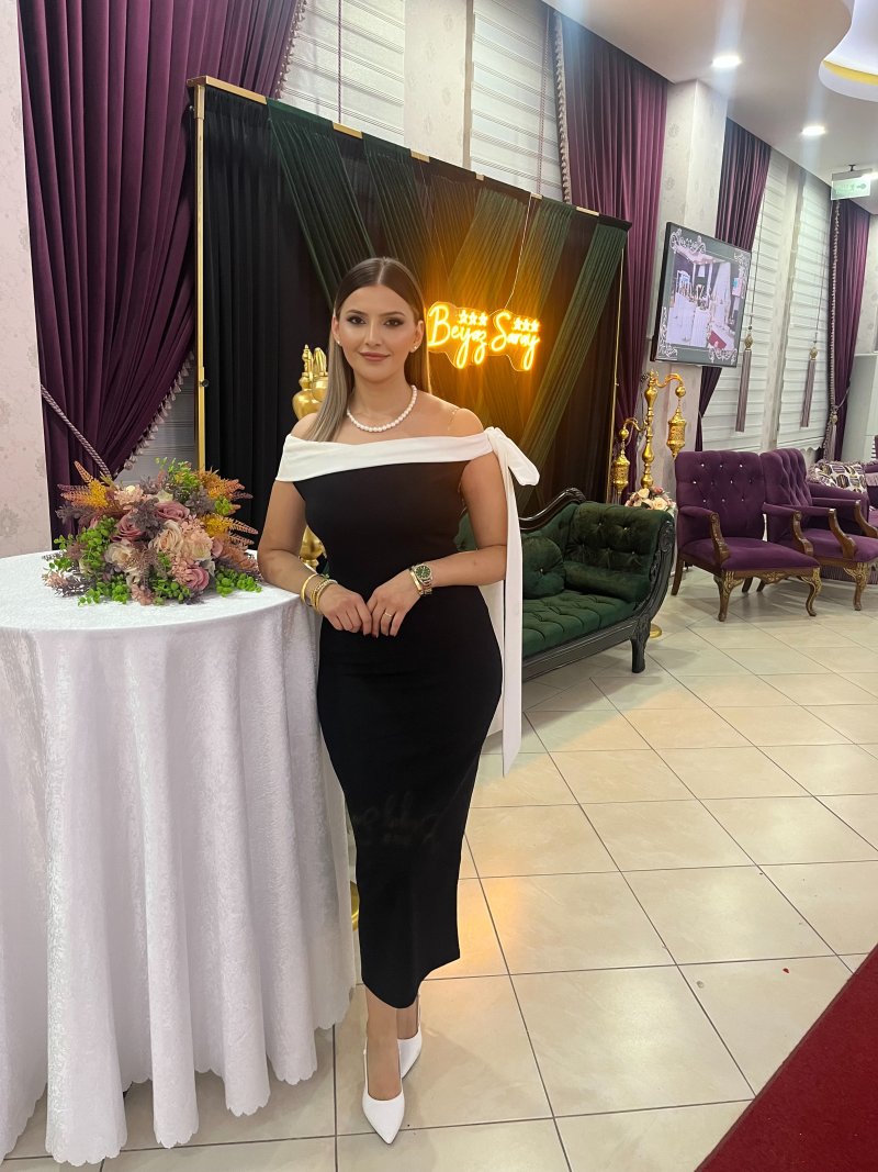 Elbise fotoğraflardaki gibi geldi. Severek giydim. Ama omuz kısmındaki beyaz bölge sürekli kayıyor. Kollarımı kaldırmasam da düz durmuyor. Yanımdakilere sürekli düzeltsene dedim. Ama gayet şık ve zarif bir elbise. Kumaşı likralı. Vücuda oturan bir model.