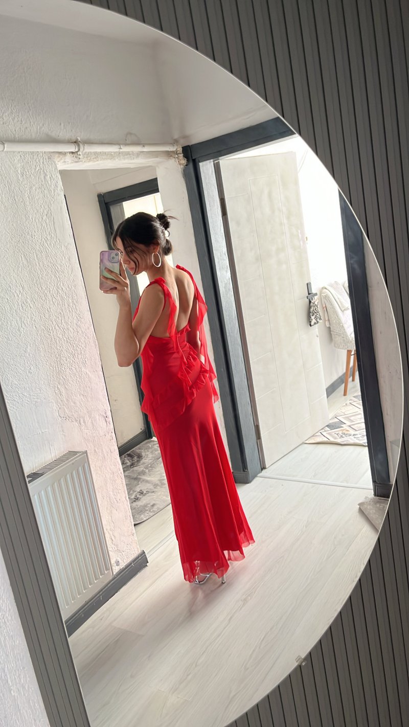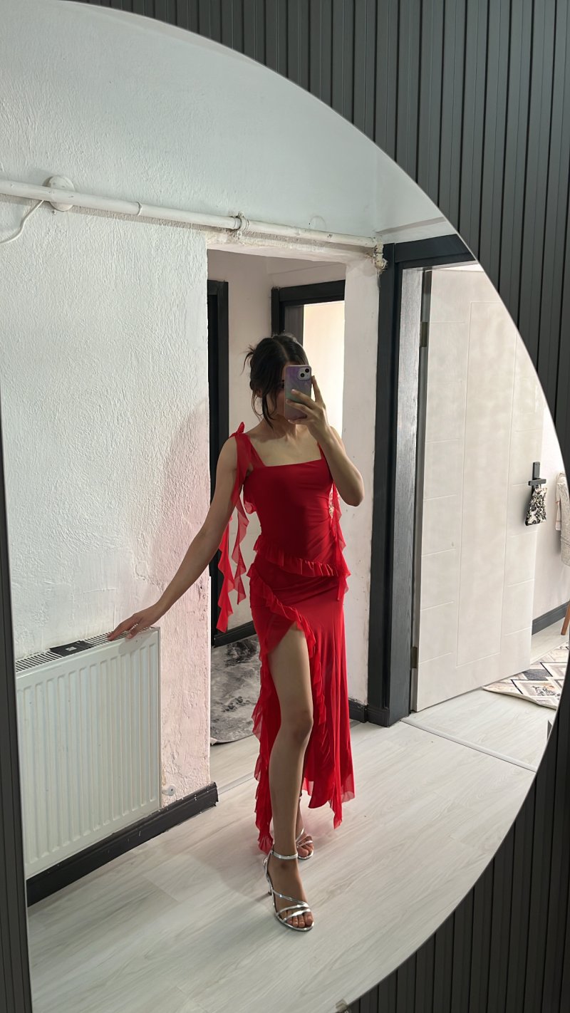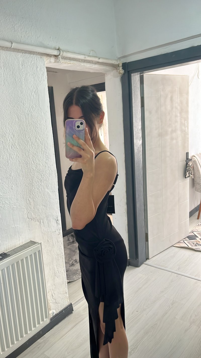 163 boy 50 kg XS aldım tam oldu kumaşı o kadar rahat ki sanki üzerimde yokmuş gibi oldukça da esnek gül detayı ağır olduğu için elbise yukarıya çıkmıyor ve yırtmaç asla açılmıyor çok rahat ve güzellll