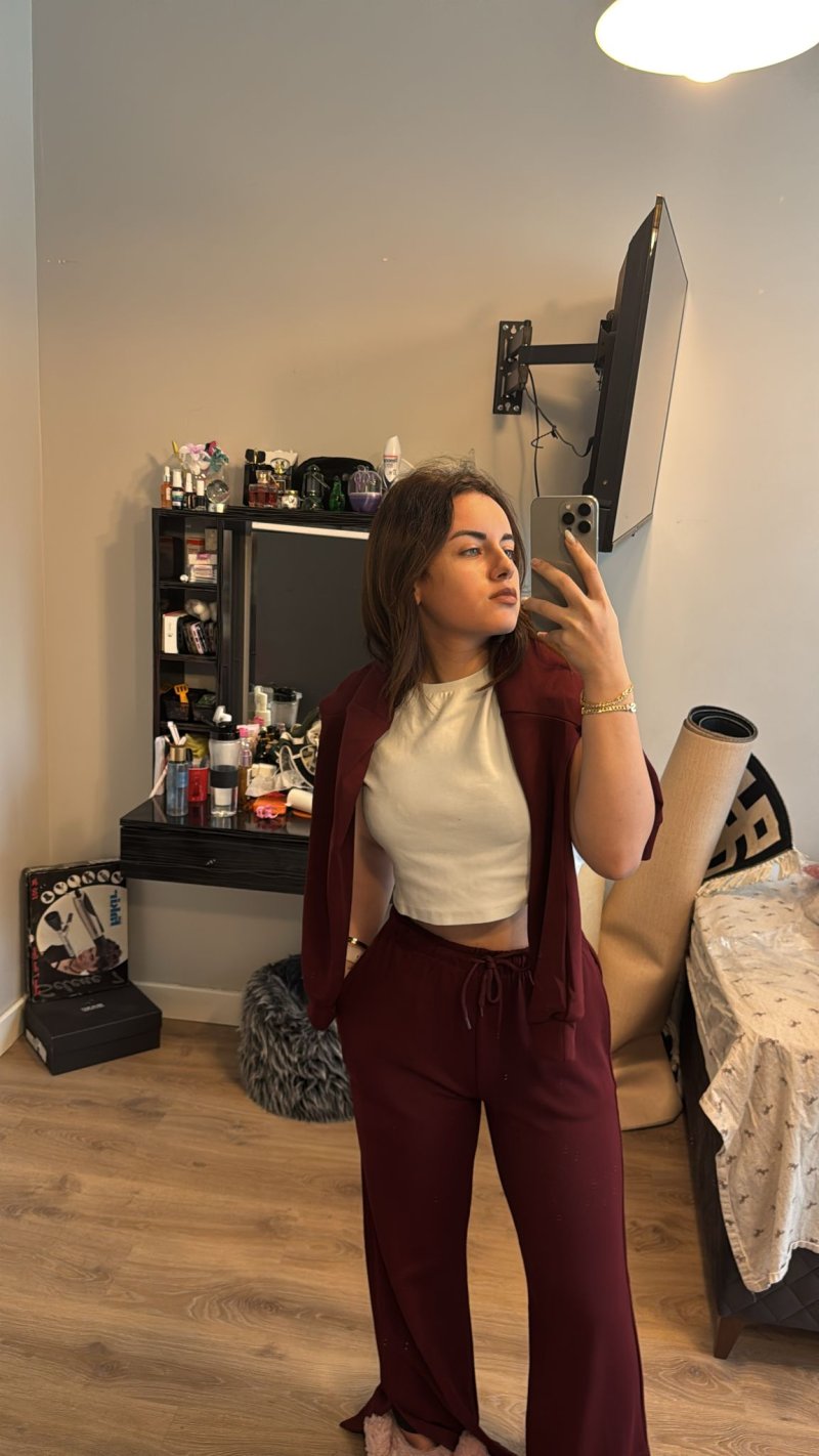 Takım çok güzel ve çok rahat bir takım kesinlikle alınması gerekiyor sadece kalıpları büyük 1 beden küçük alınabilir kumaşı vs çok güzel çok ince değil çok kalında değil🥰