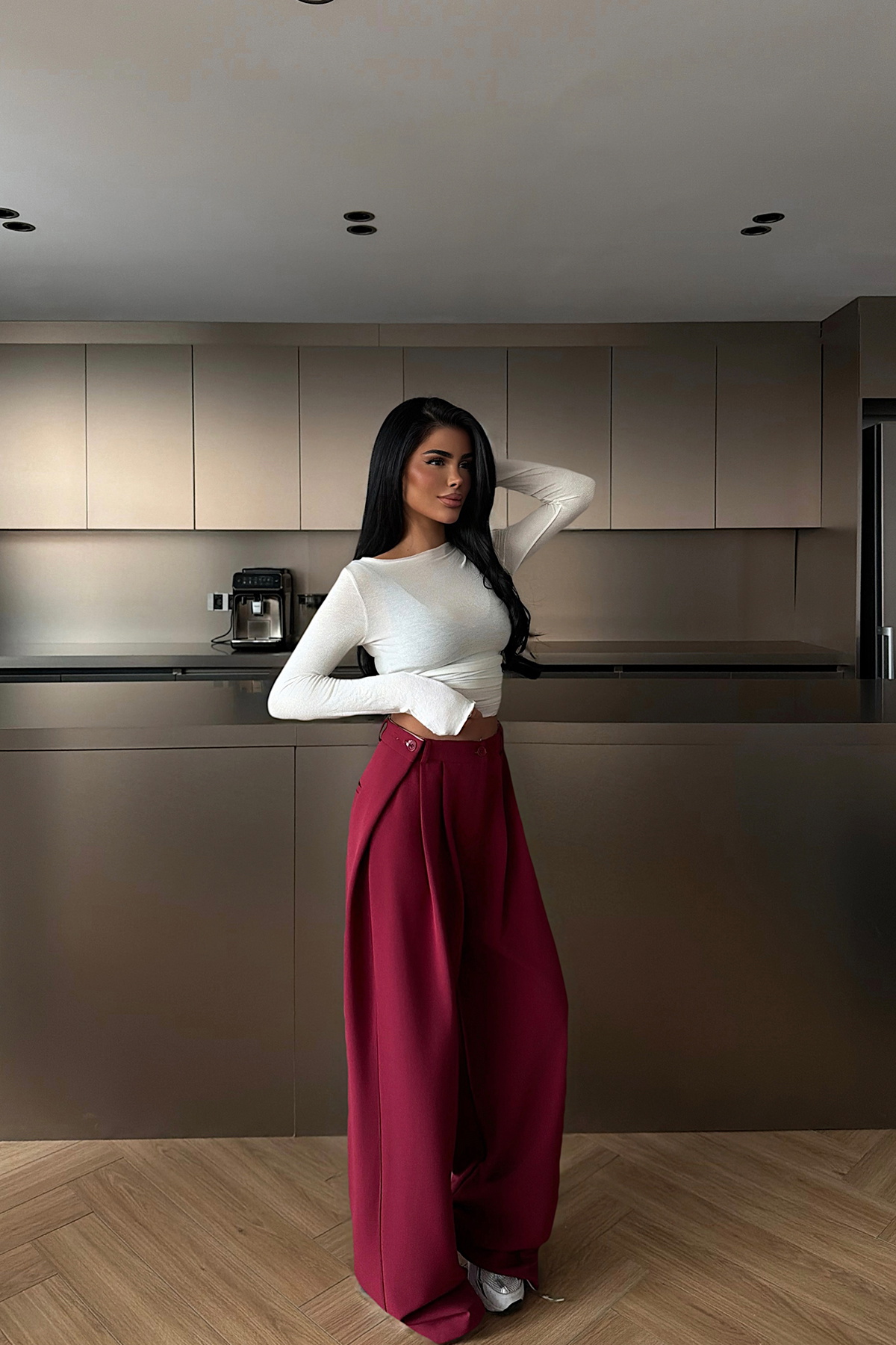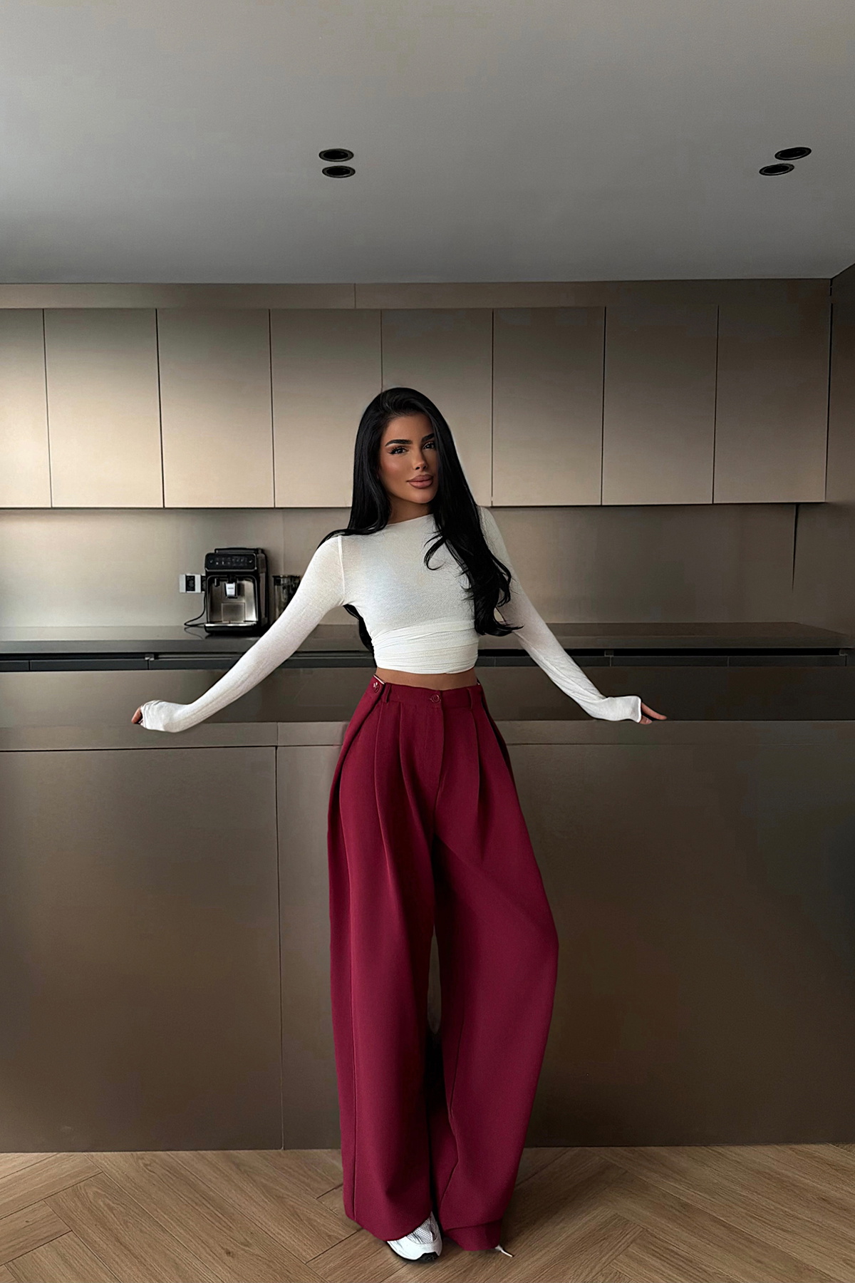 Geniş paça kesimiyle öne çıkan palazzo pantolon, akıcı duruşu ve yüksek bel formuyla vücut oranını dengeli gösterir. Rahat kalıbı sayesinde gün boyu konfor sunarken, modern ve şık görünümüyle hem günlük kombinlerde hem de daha özenli stillerde kolayca tercih edilebilir.