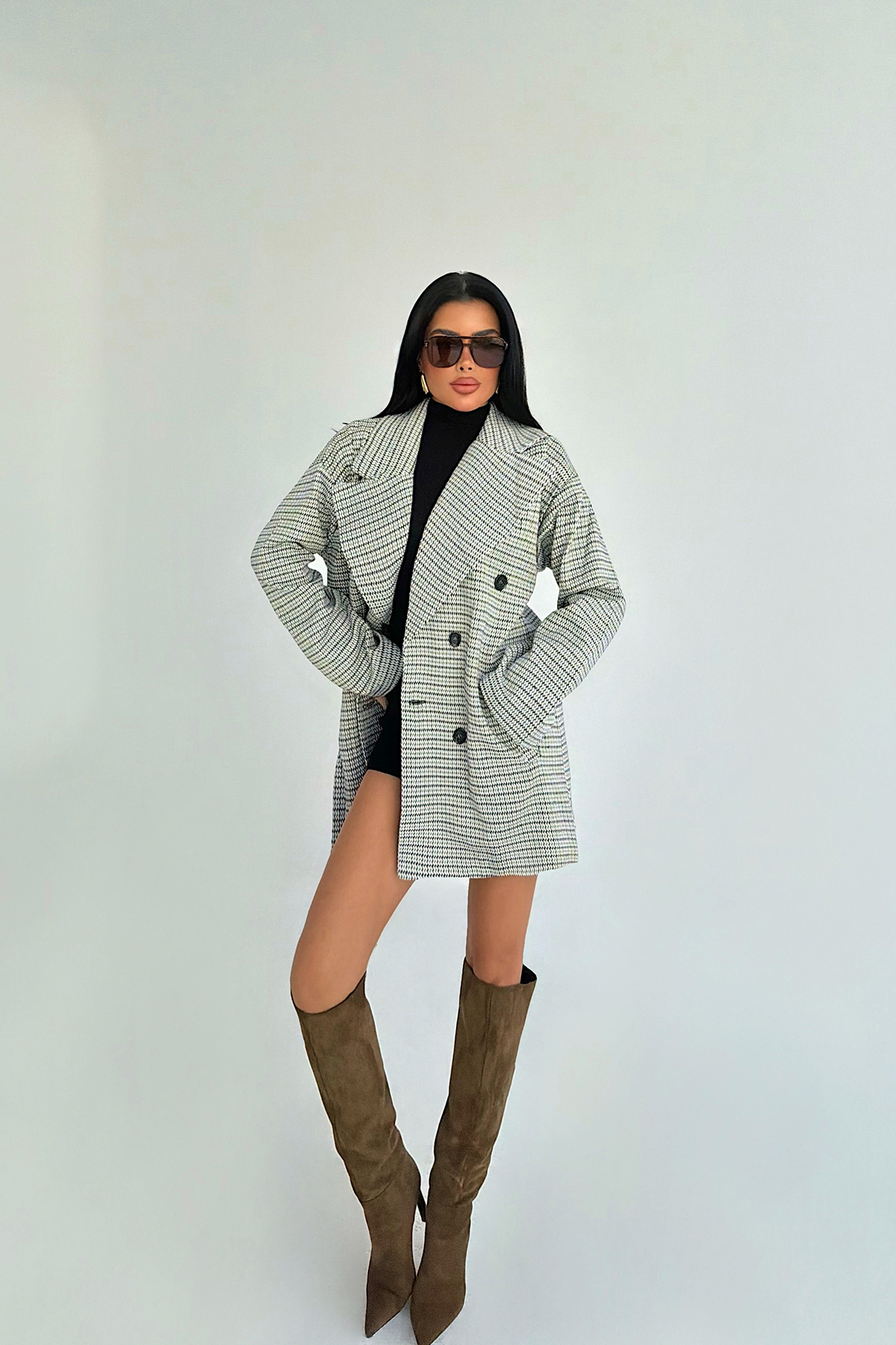 Yüzeyindeki çizgili dokusu ile tasarıma karakter katan, düğme kapama detayıyla öne çıkan dış giyim parçasıdır. Orta uzunluk formu ve temiz dikiş hatlarıyla dengeli bir siluet oluştururken, yapısal kesimi standart kalıpla birleşir. Ön bölümdeki düğme detayları cekete fonksiyonel bir vurgu kazandırır.