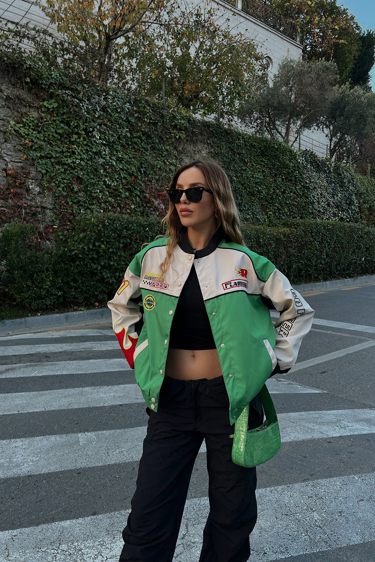 Yeşil Önü Baskılı Kolej Ceket ATE2536