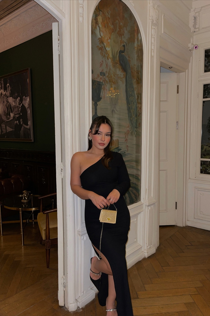Siyah Derin Yırtmaçlı Uzun Elbise ATE3114