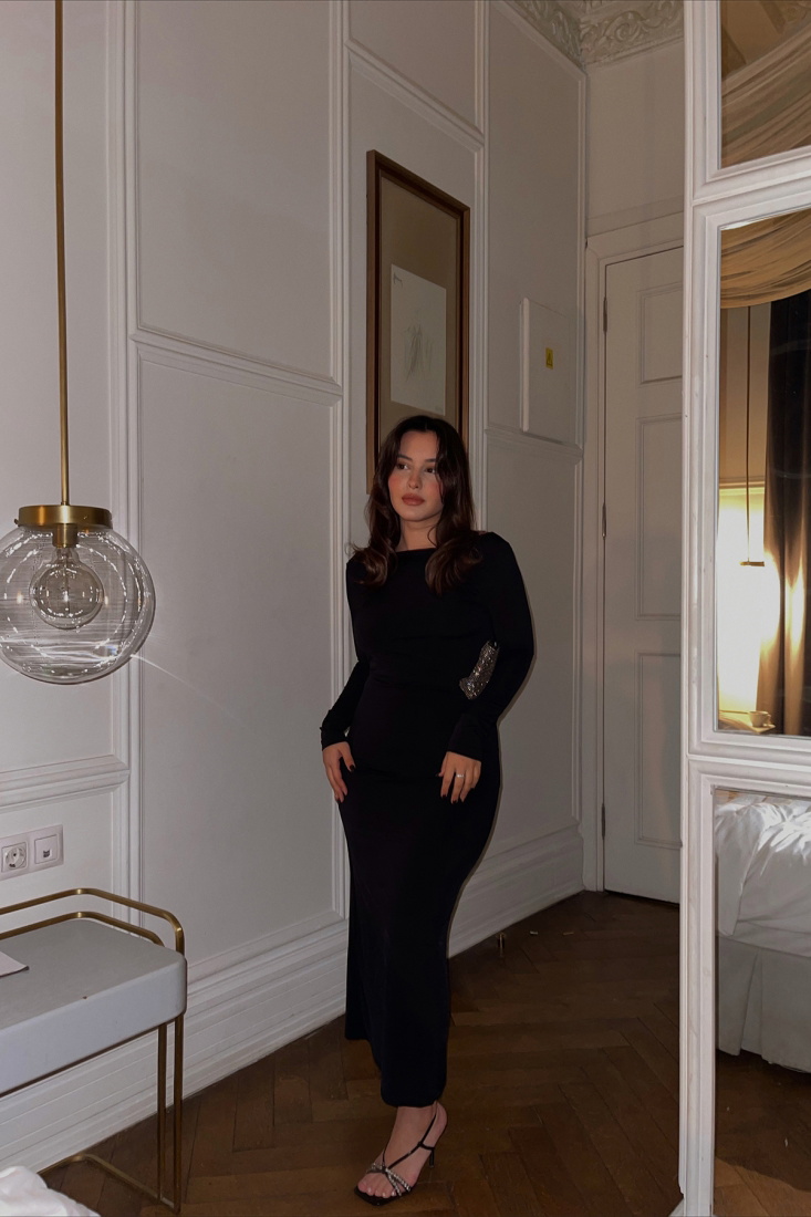 Siyah Sırt Detay Uzun Elbise ATE3005